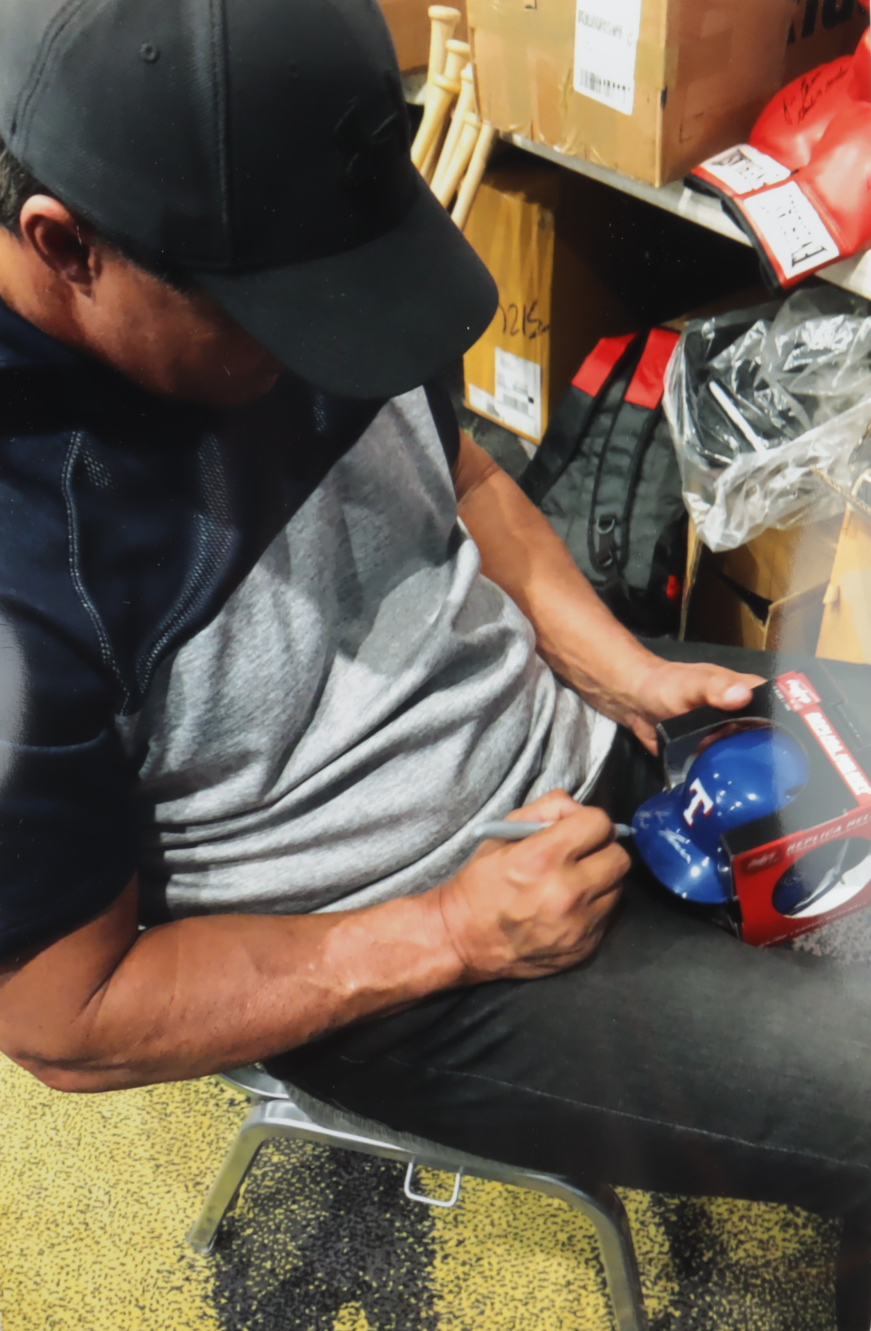 Rawlings Texas Rangers mini batting helmet has been hand-signed by Jose Canseco.