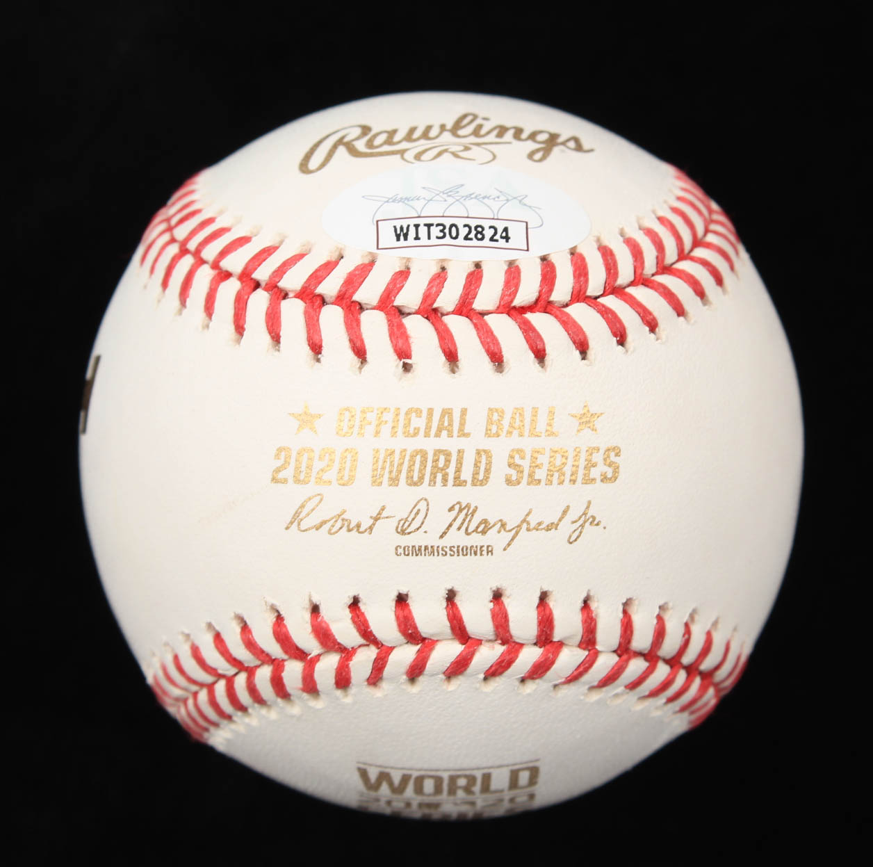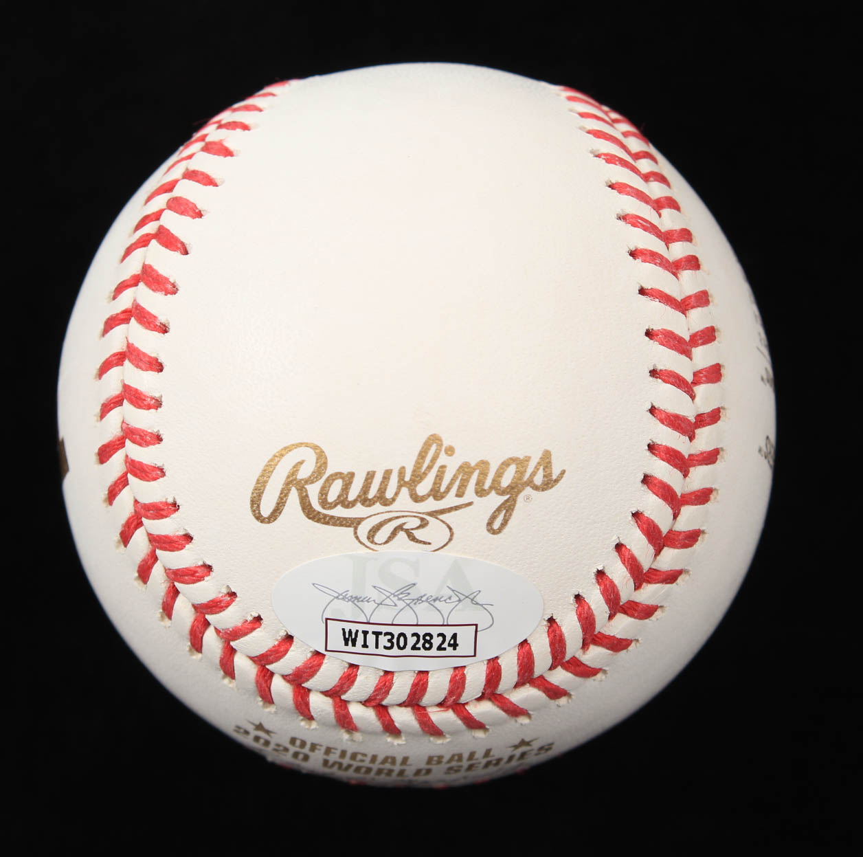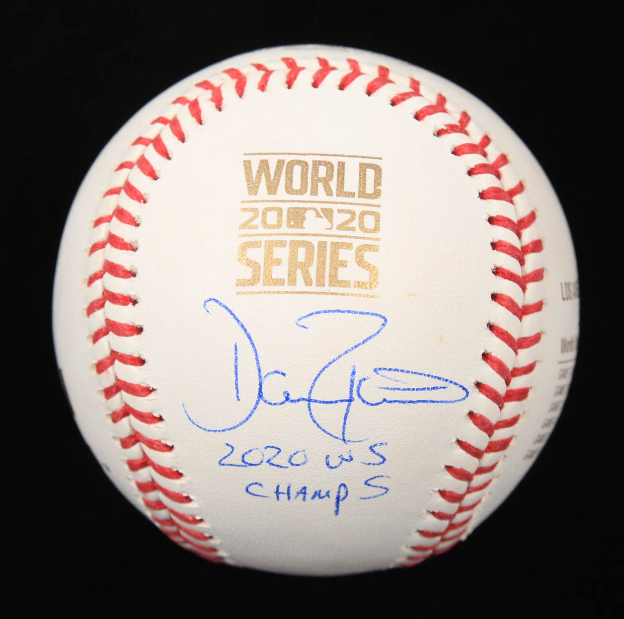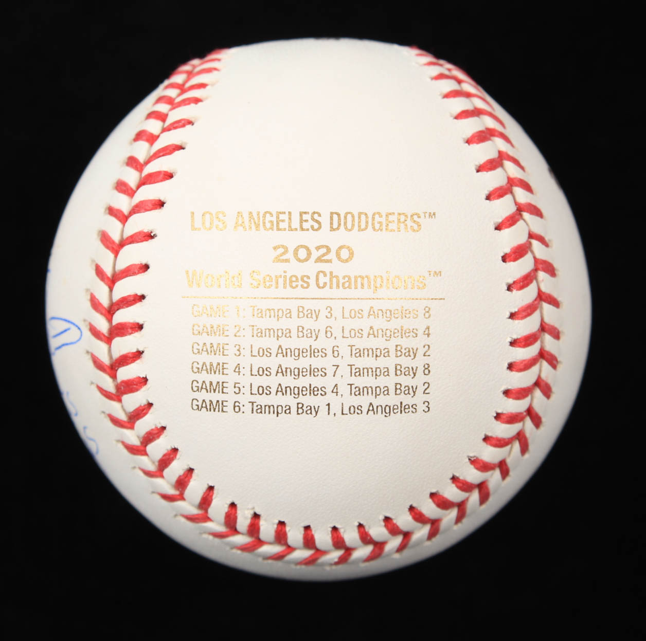 Rawlings 2020 World Series Los Angeles Dodgers logo commemorative baseball has been hand-signed by Dave Roberts.