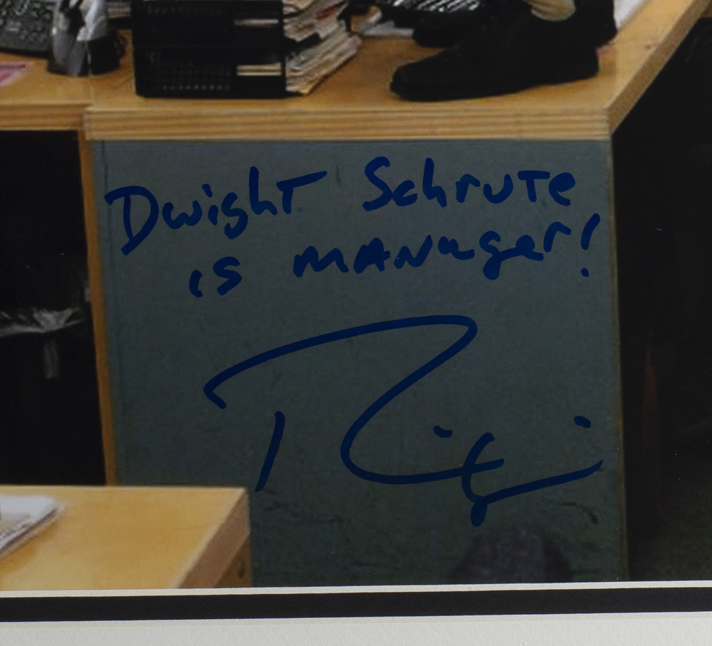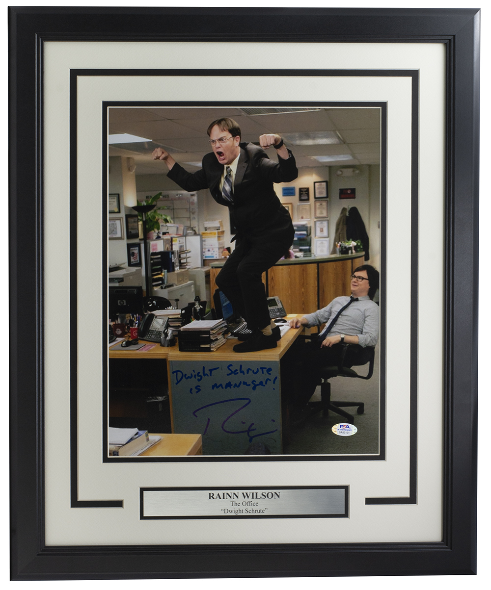 Custom framed display measures 16" x 20" in size and features a photo hand-signed and inscribed by Rainn Wilson (Dwight Schrute).