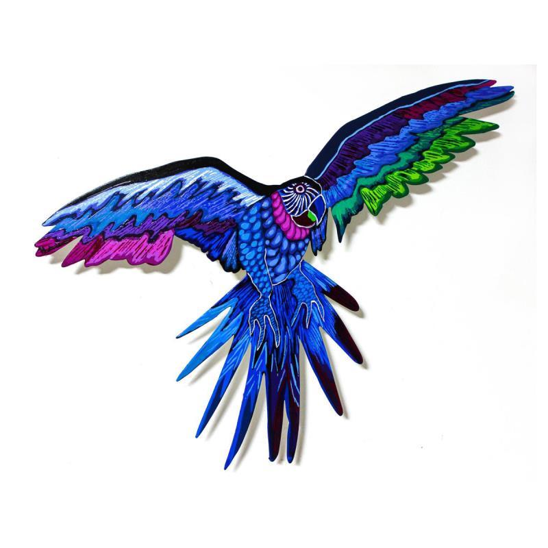 Patricia Govezensky, "Macaw XXIII" Hand Signed Original Painting on Laser Cut Steel with Letter of Authenticity. Measures Approximately 11.5" x 18".