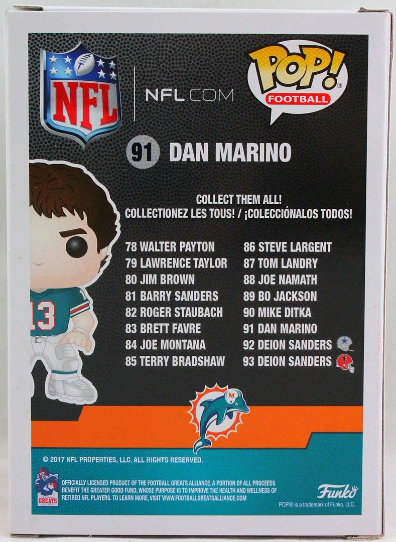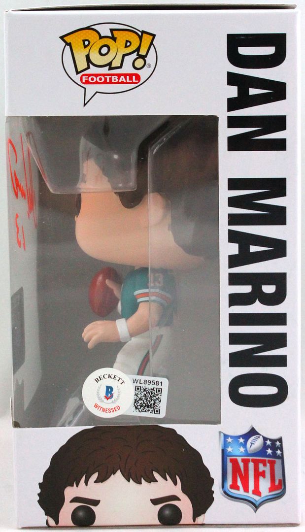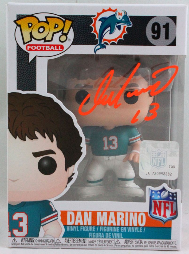 Funko Pop! vinyl figure measures approximately 4" in height and has been hand-signed on the packaging by Dan Marino (HOF).