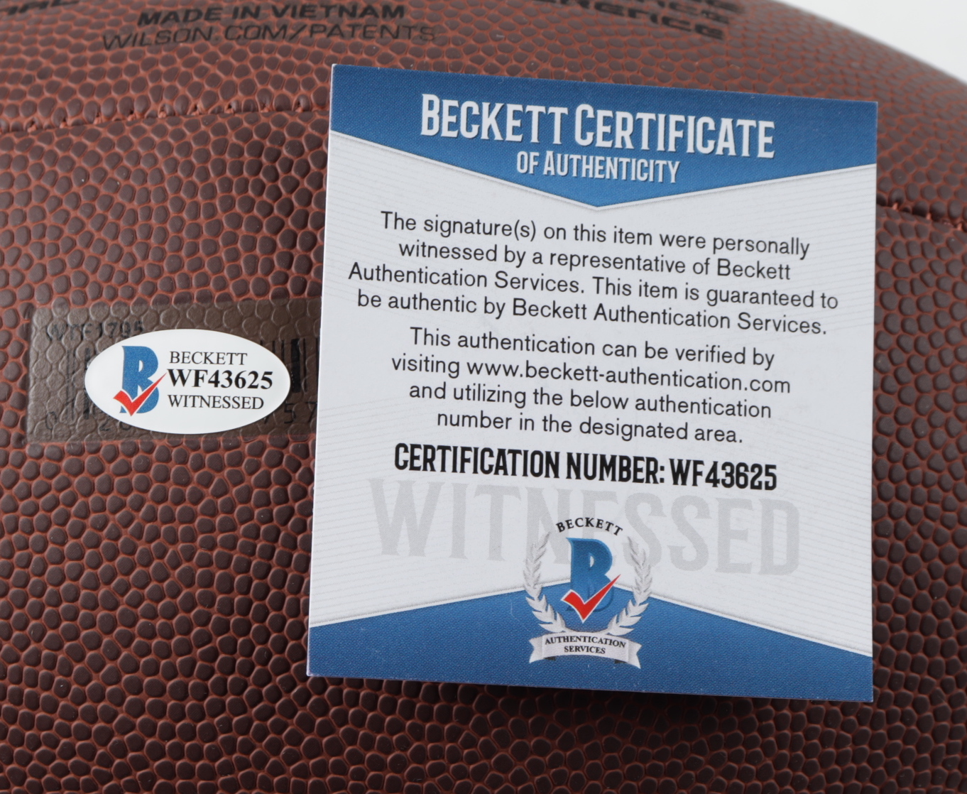 The lot / autograph(s) includes an official Beckett Authentication Services serially-numbered hologram and matching COA for authenticity purposes. The signing of this item was witnessed by Beckett.