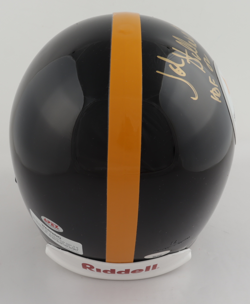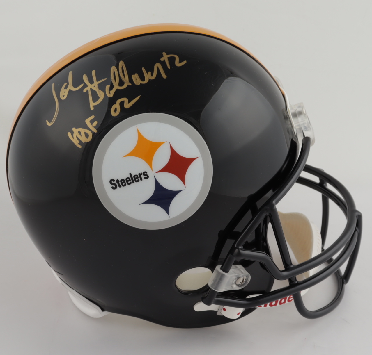 Riddell Pittsburgh Steelers full-size replica helmet. Hand-signed and inscribed by John Stallworth (HOF). Please note, the helmet shows signs of wear. See photos for details.