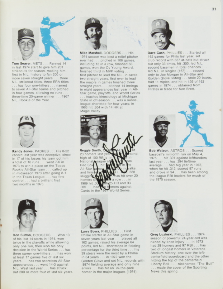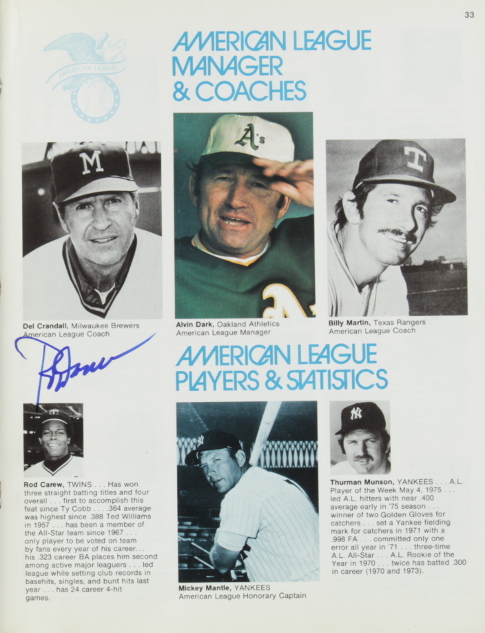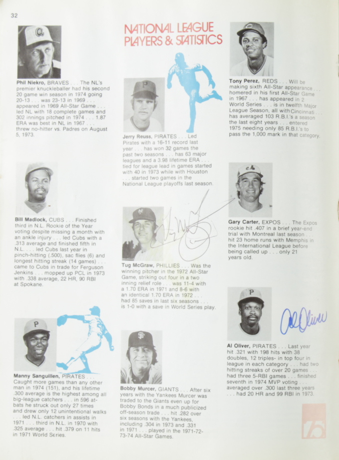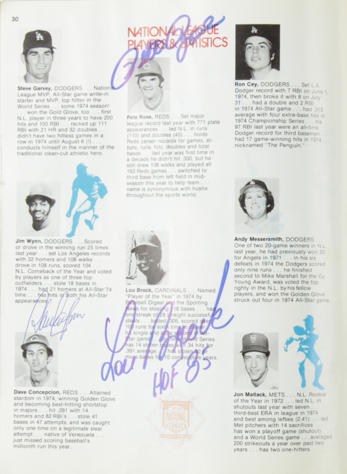 1975 MLB All-Star Game Program Signed by (10) with Pete Rose, Lou Brock, Rollie Fingers, Dave Conception, Rod Carew (Sportscards.com LOA) (See Description))