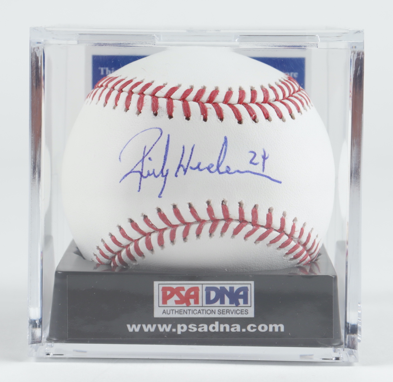 Rawlings Official Major League Baseball. Hand-signed by Rickey Henderson (New York Yankees, HOF). Includes display case as shown.