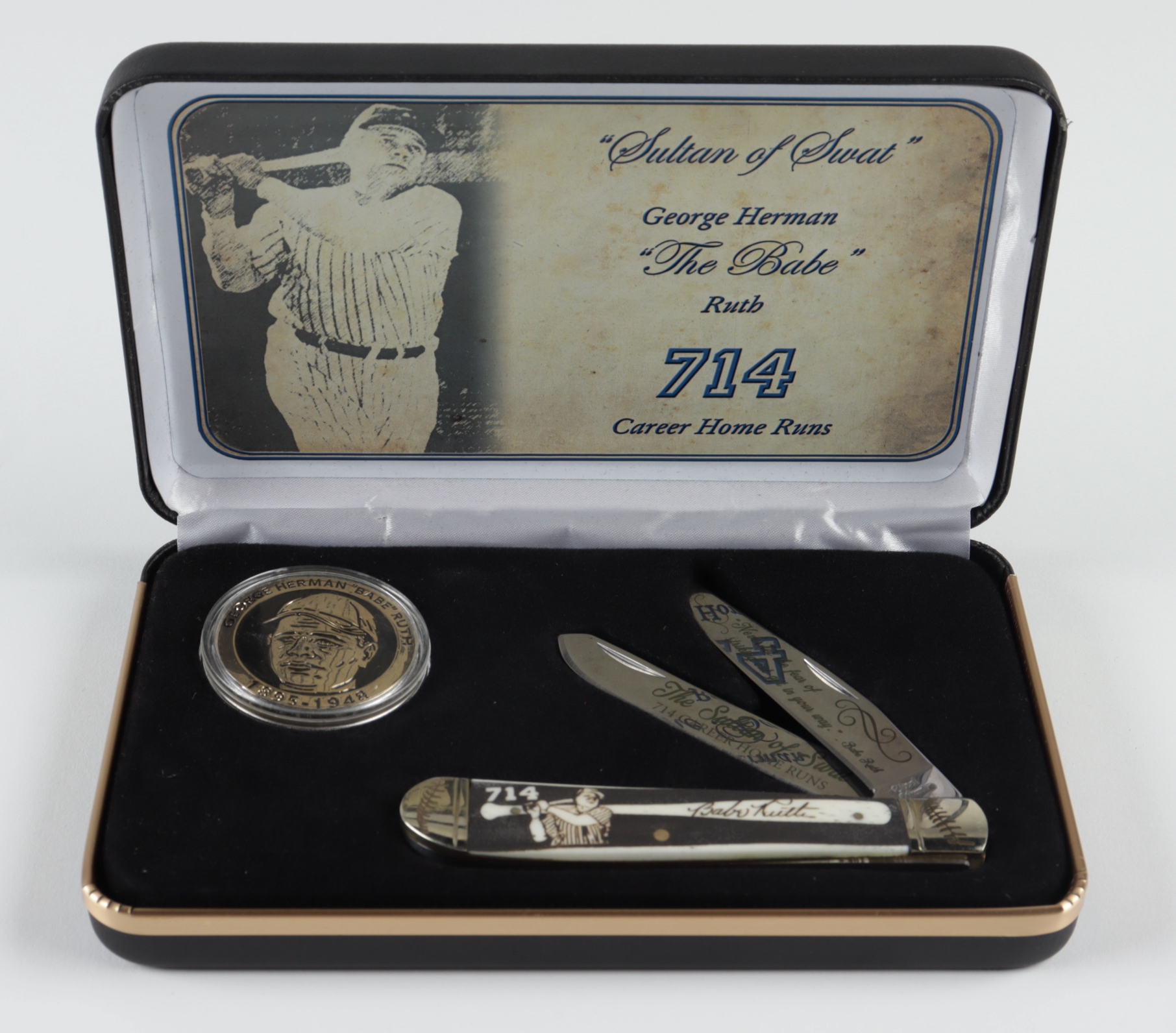 Babe Ruth Vintage "714 Career Home Runs" Pocket Knife Display with Coin