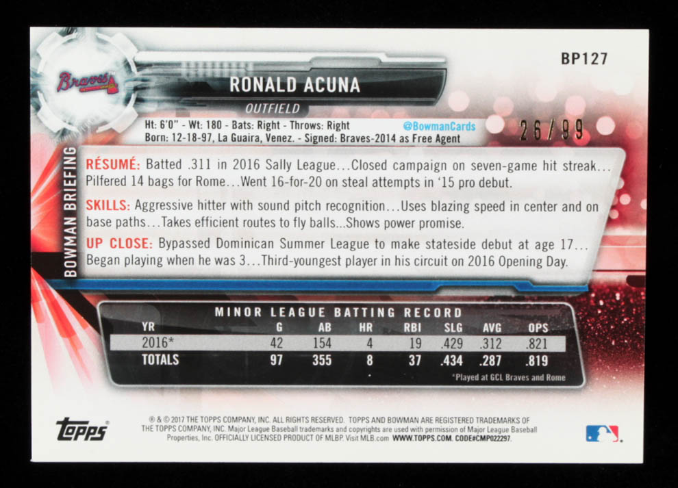 Ronald Acuna 2017 Bowman Prospects Green #BP127 #26/99 RC