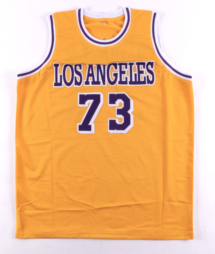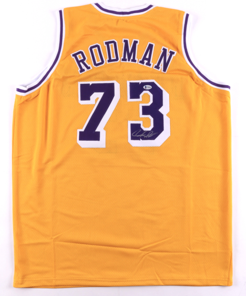 Custom on-court style jersey. Everything is sewn on, size XL. Has been hand-signed by Dennis Rodman (HOF).