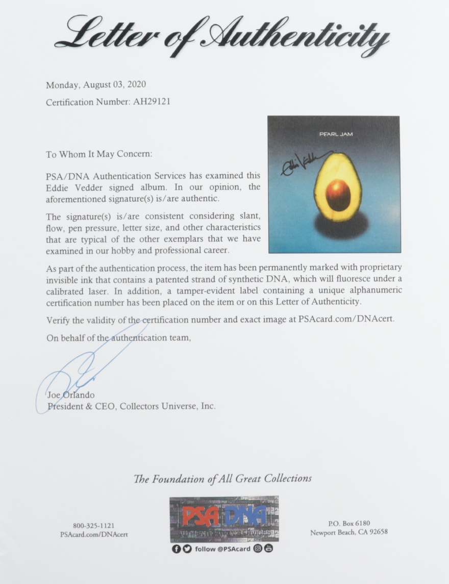 Eddie Vedder Signed Pearl Jam Vinyl Record Album (PSA)
