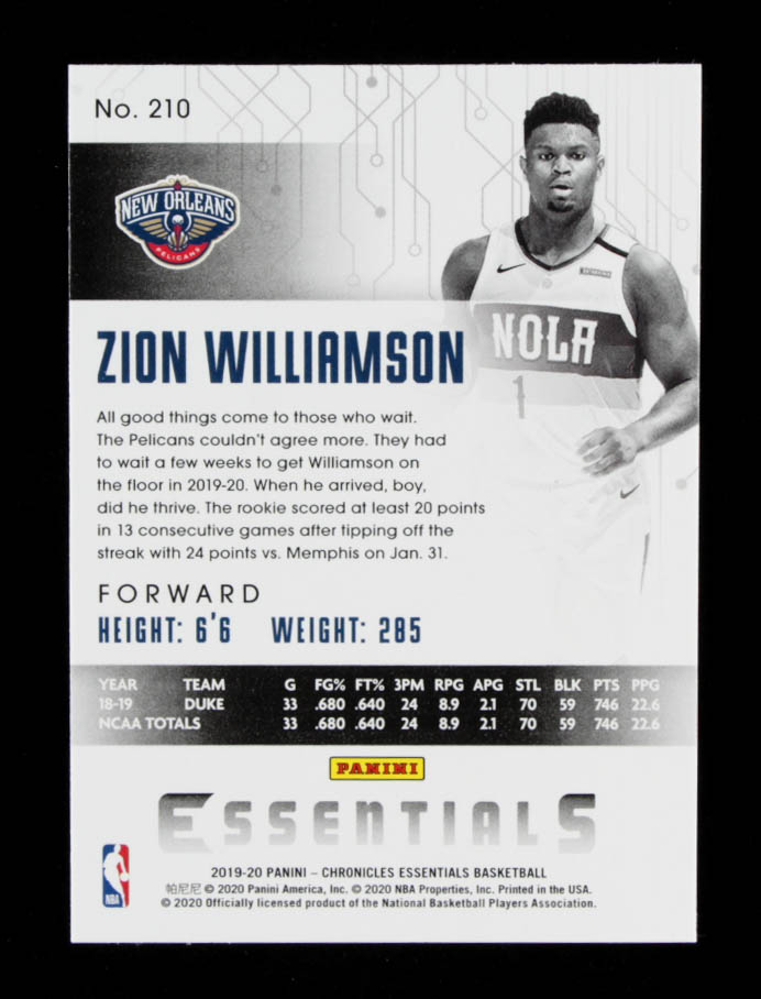 Zion Williamson 2019-20 Panini Chronicles #210 Essentials