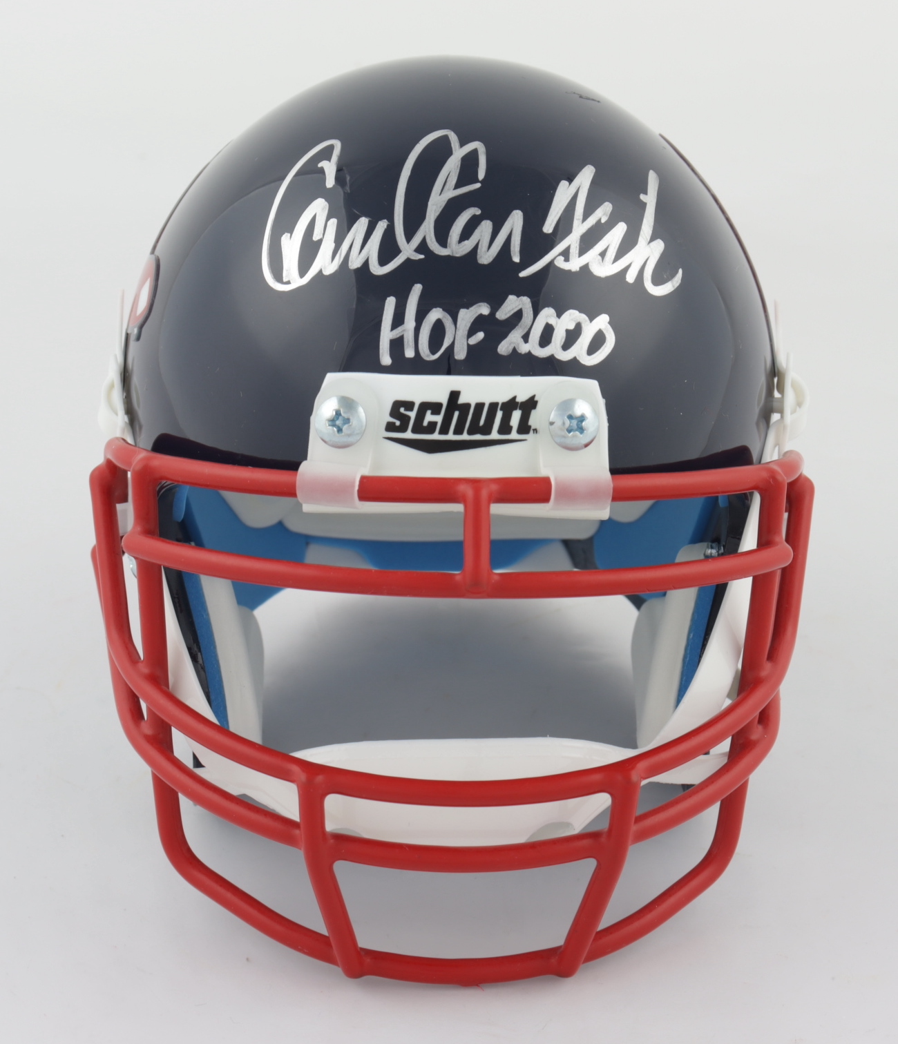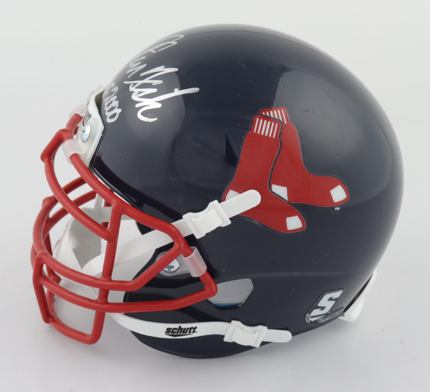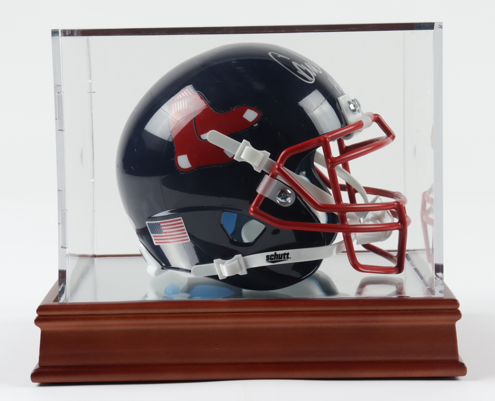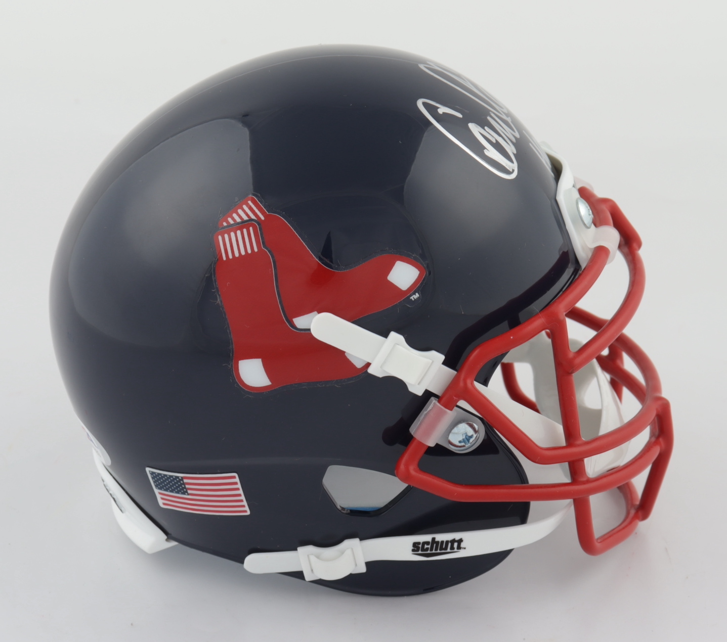 Schutt Boston Red Sox mini helmet. Hand-signed by Carlton Fisk (HOF). Includes display case as shown.