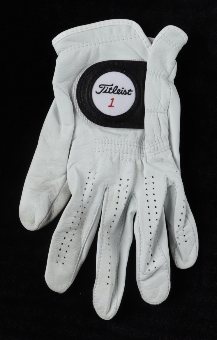 Titleist #1 golf glove has been hand-signed by John Daly. Please note, the glove shows signs of wear. See photos for details.