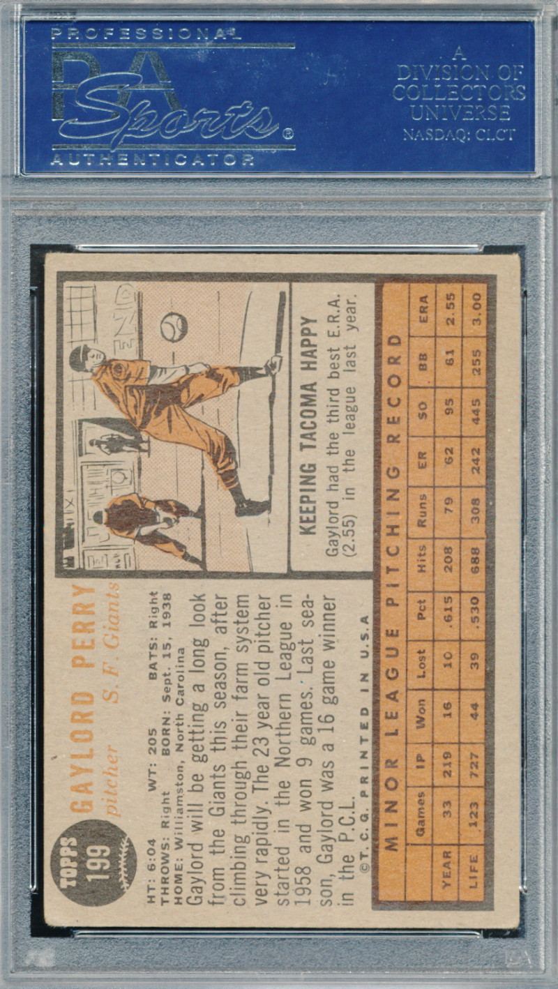 Gaylord Perry Signed 1962 Topps #199 RC (PSA Encapsulated)