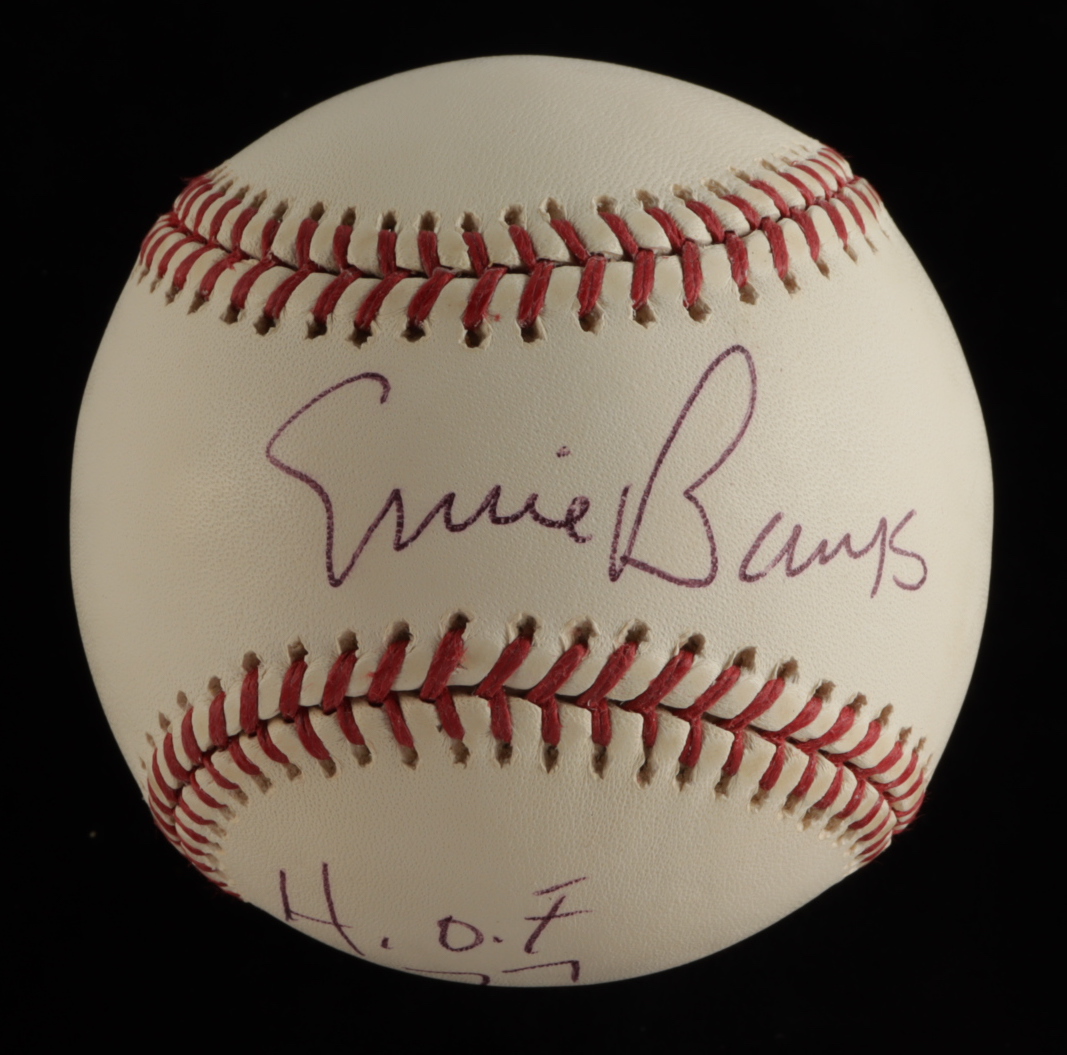 Rawlings Official Major League Baseball. Baseball has been hand-signed by Ernie Banks (D. 2015, Chicago Cubs, HOF).