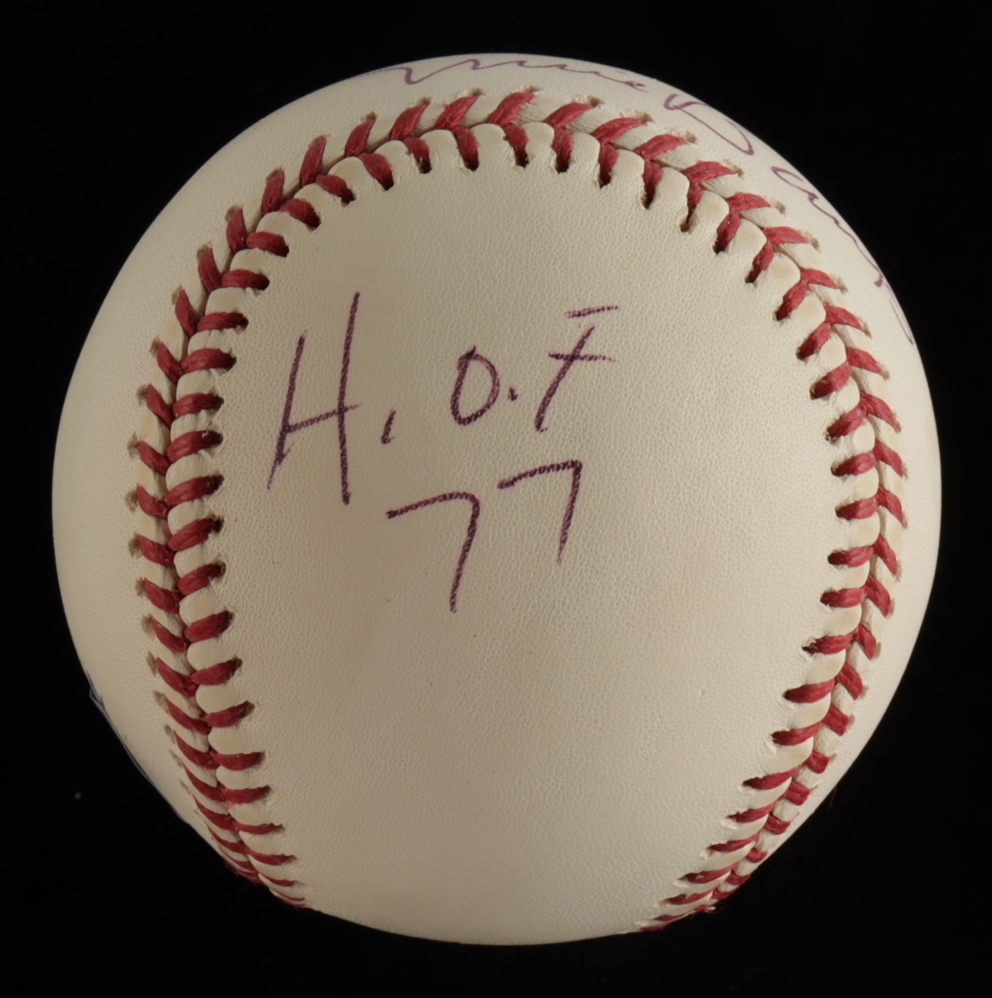 Ernie Banks Signed OML Baseball Inscribed "H.O.F. 77" (Beckett COA)