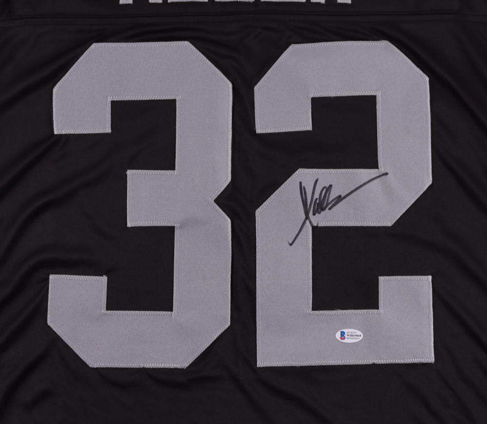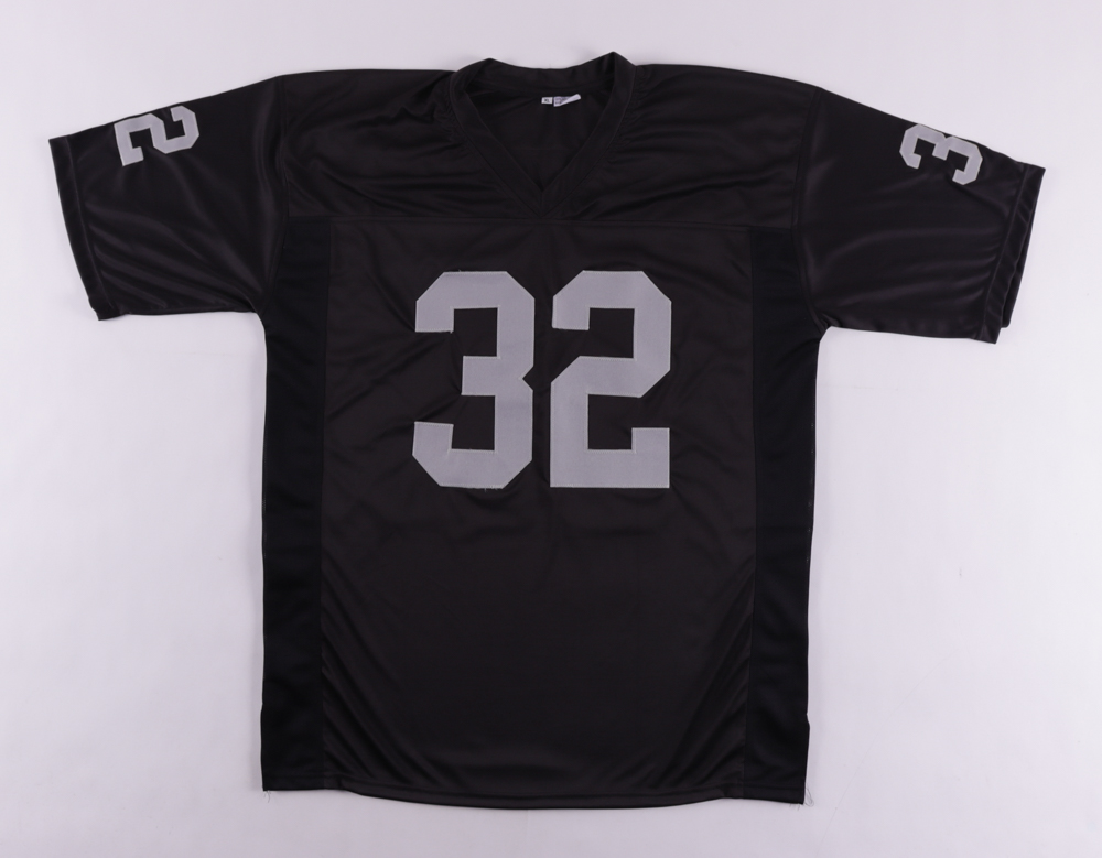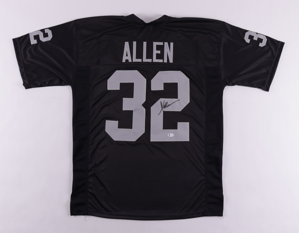 Custom on-field style jersey. Everything is sewn on, size XL. Has been hand-signed by Marcus Allen (HOF).