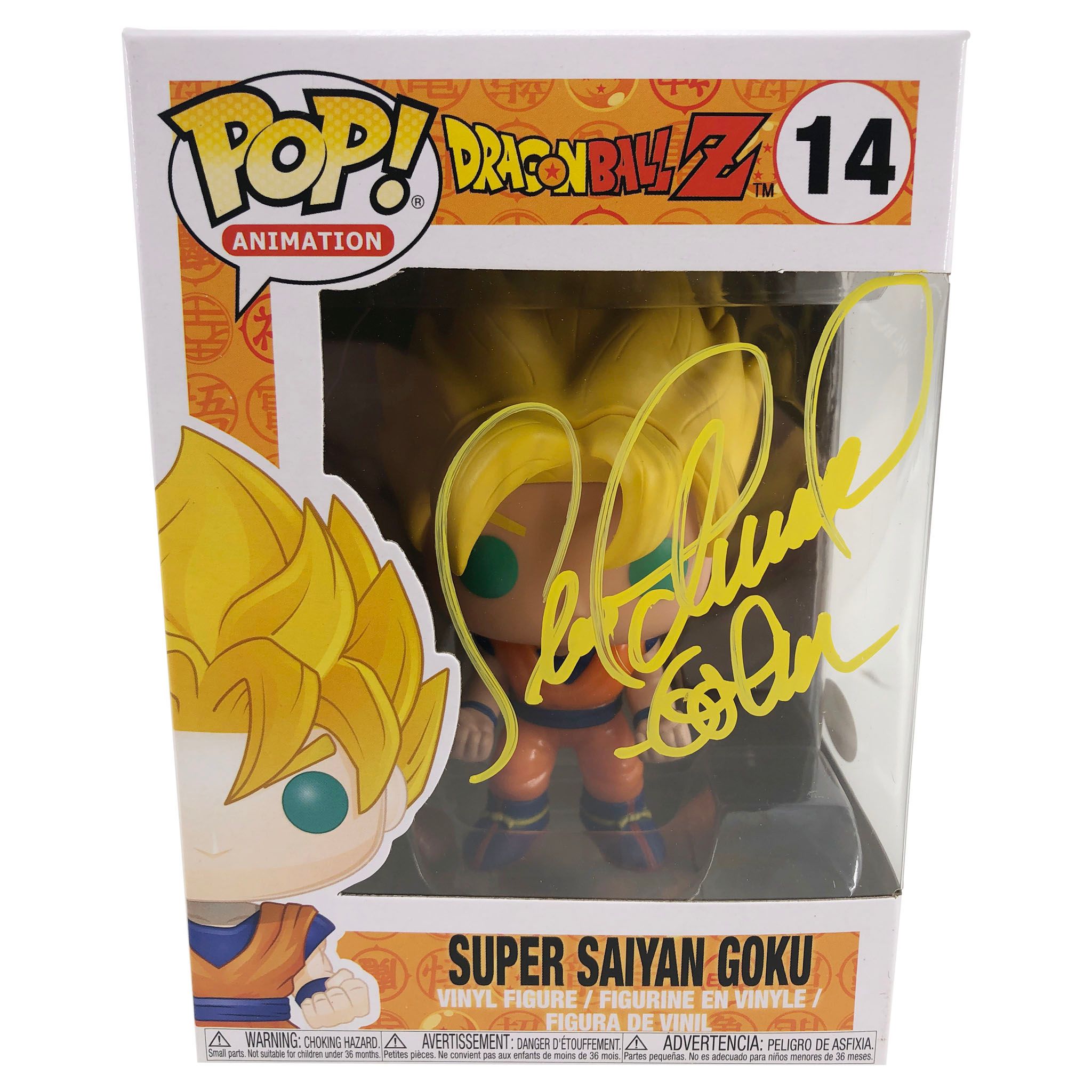 Funko Pop! Figure measures approximately 4" tall and the packaging has been hand-signed by Sean Schemmel.