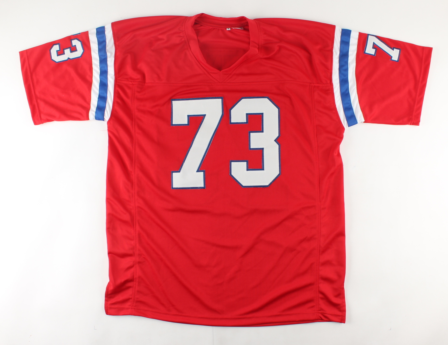 Custom on-field style jersey. Everything sewn on, size XL. Hand-signed by John Hannah (HOF).