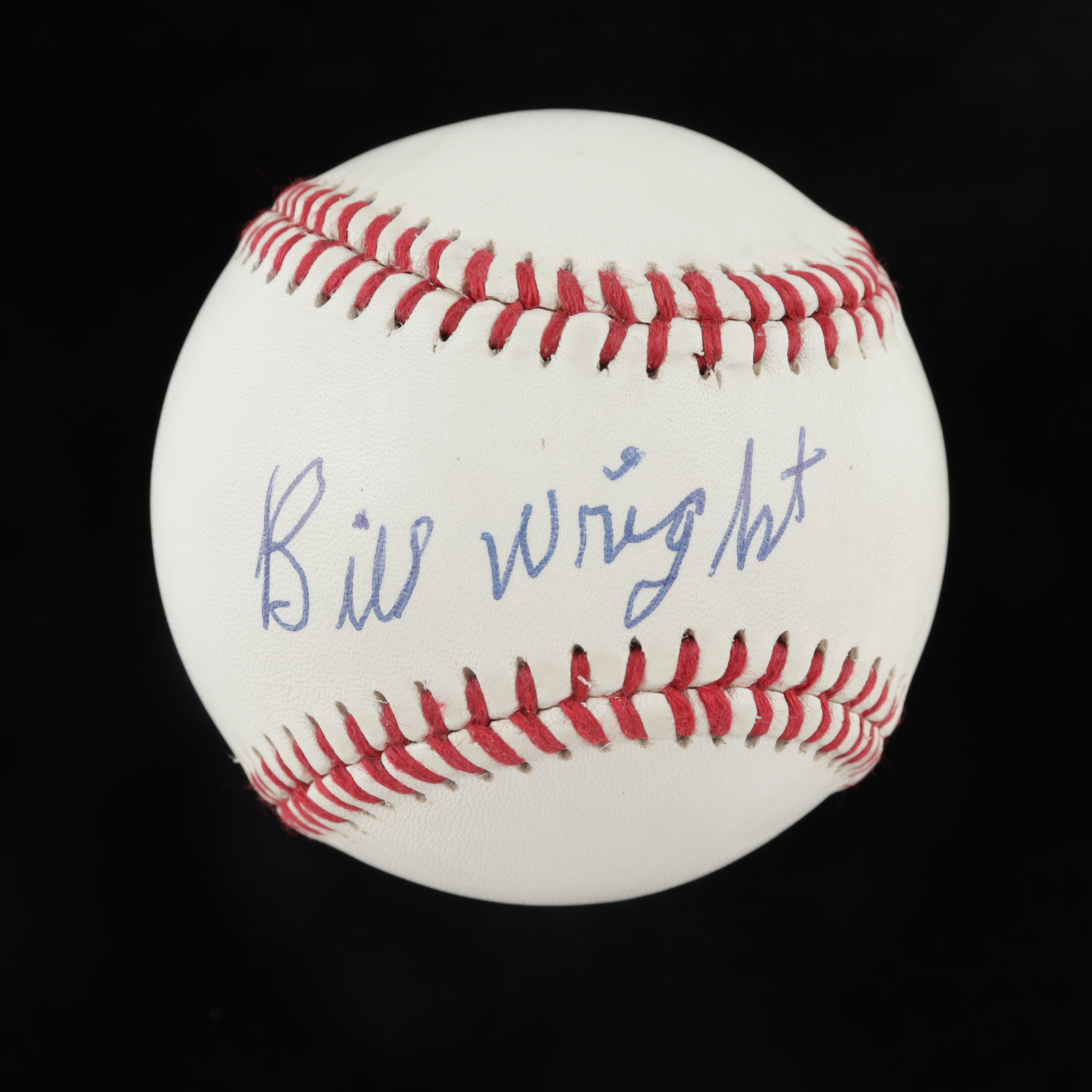 Baseball has been twice-signed by "Wild" Bill Wright (D. 1996, Baltimore Elite Giants. Please note, the baseball shows signs of natural toning.