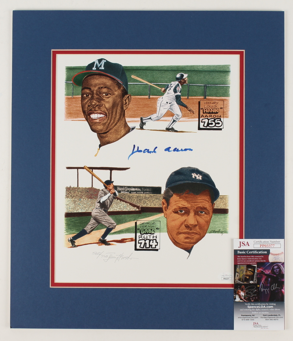 Hank Aaron Signed LE 15x17.5 Custom Matted Photo Display (JSA COA)