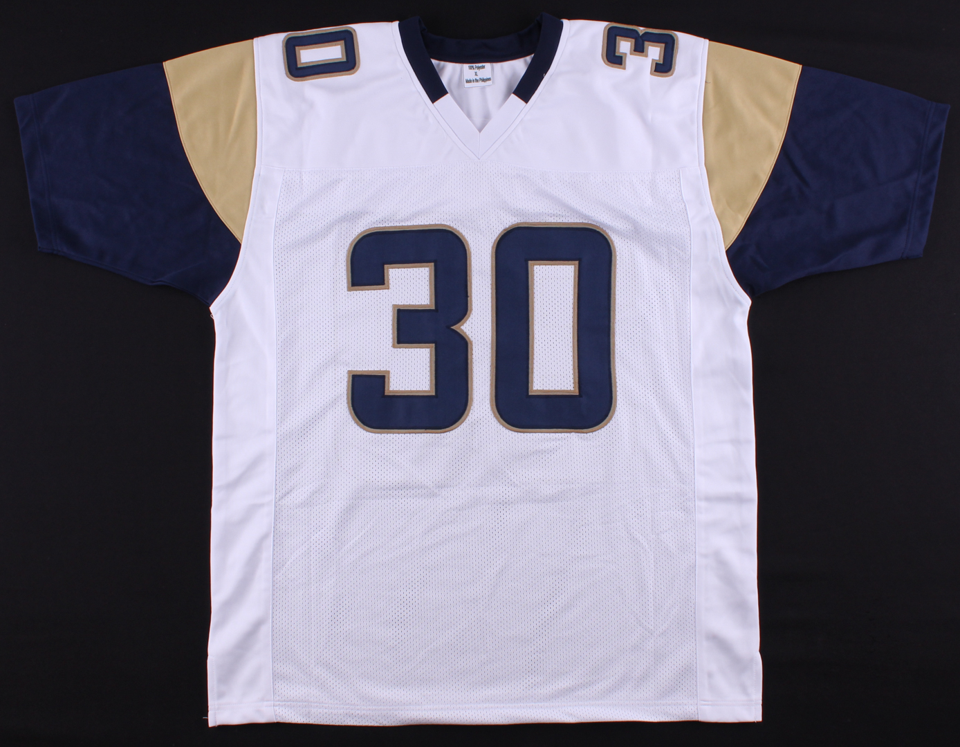 Custom on-field style jersey. Everything is sewn on, size XL. Hand-signed by Todd Gurley II.
