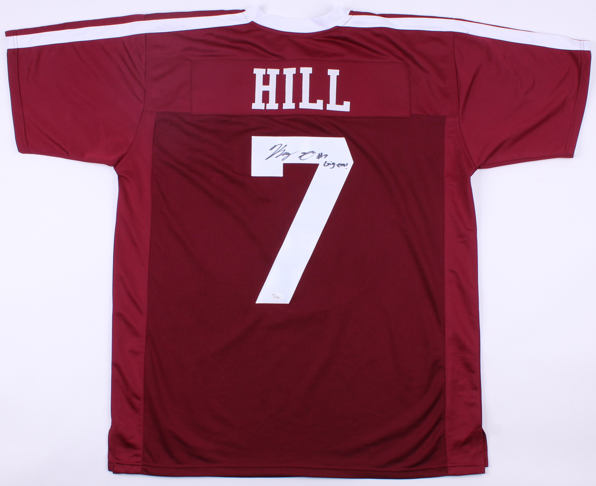 Custom on-field style jersey. Everything sewn on, size XL. Hand-signed by Kenny Hill.