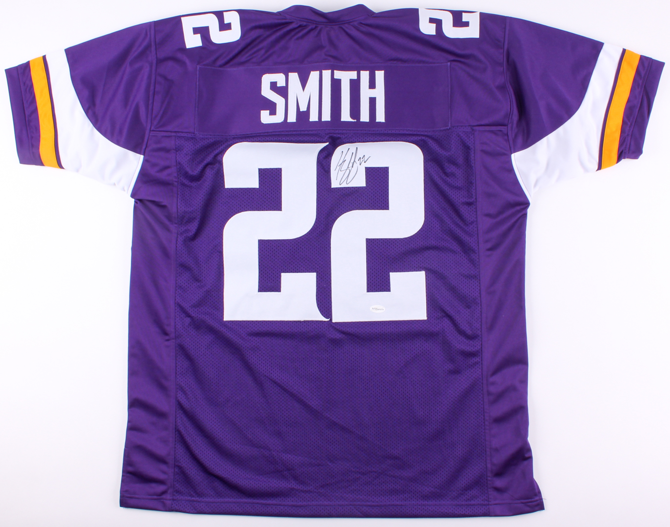 Custom on-field style jersey. Everything is sewn on, size XL. Hand-signed by Harrison Smith.