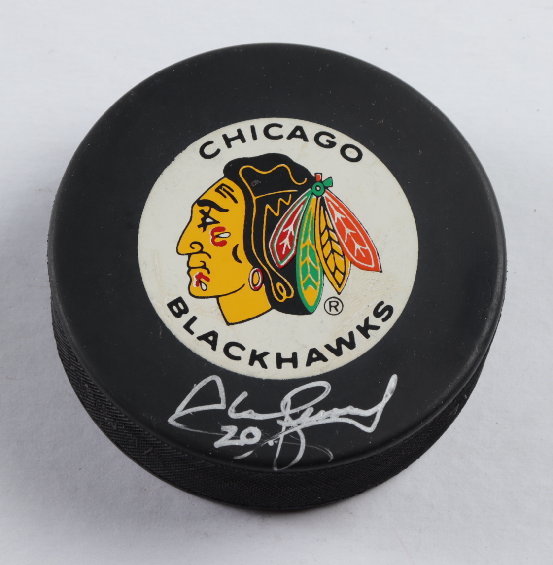 Chicago Blackhawks Logo Hockey Puck. Hand-signed by Al Secord.