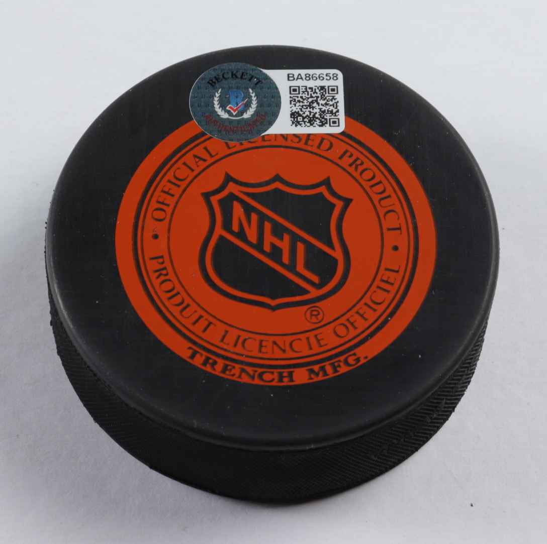 Chicago Blackhawks Logo Hockey Puck. Hand-signed by Doug Wilson (HOF).