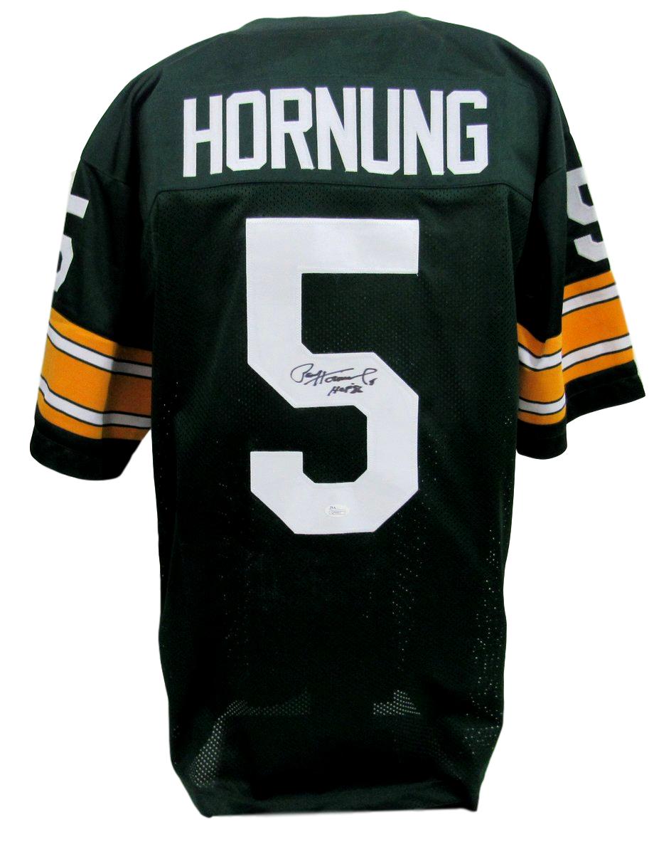 Custom on-field style jersey. Everything sewn on, size XL. Hand-signed by Paul Hornung (D. 2020, HOF).