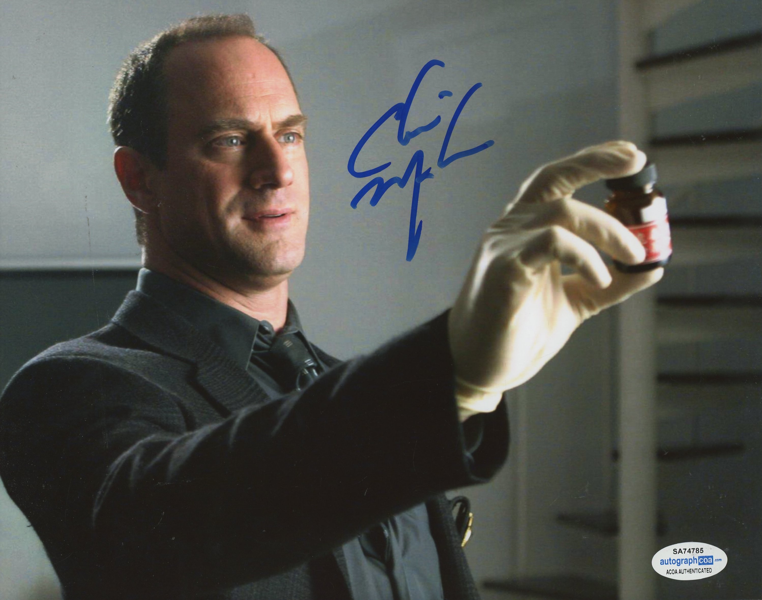 Photo measures 8" x 10" in size and has been hand-signed by Christopher Meloni.