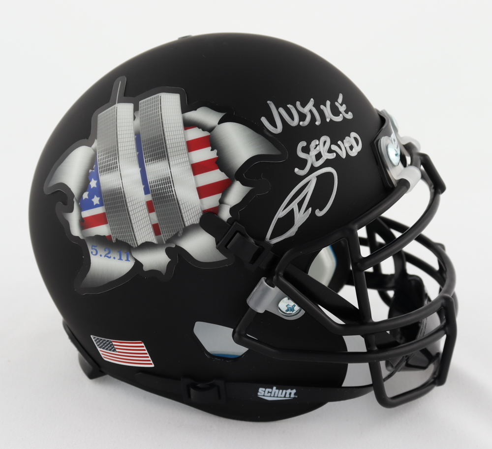 Robert O'Neill Signed "Twin Towers Tribute" Matte Black Mini Helmet Inscribed "Justice Served!" (PSA COA)