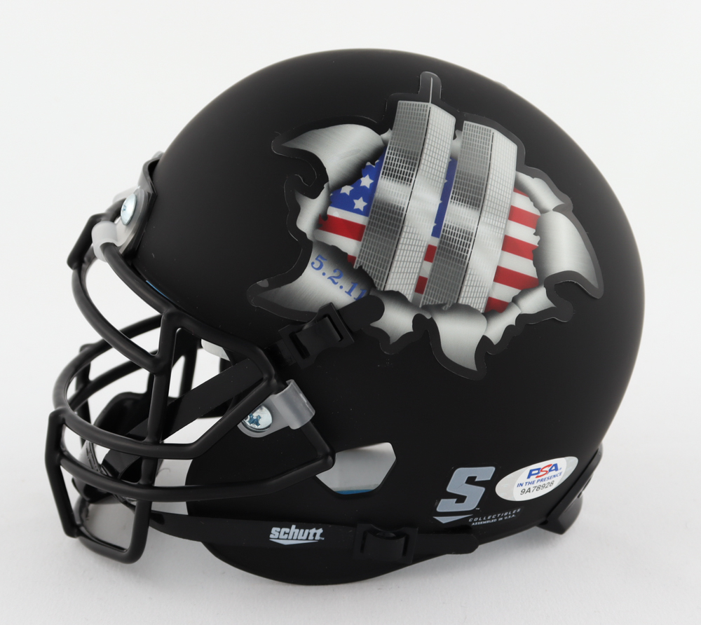 Schutt "Twin Towers Tribute" Matte Black Mini Helmet has been hand-signed by Robert O'Neill.