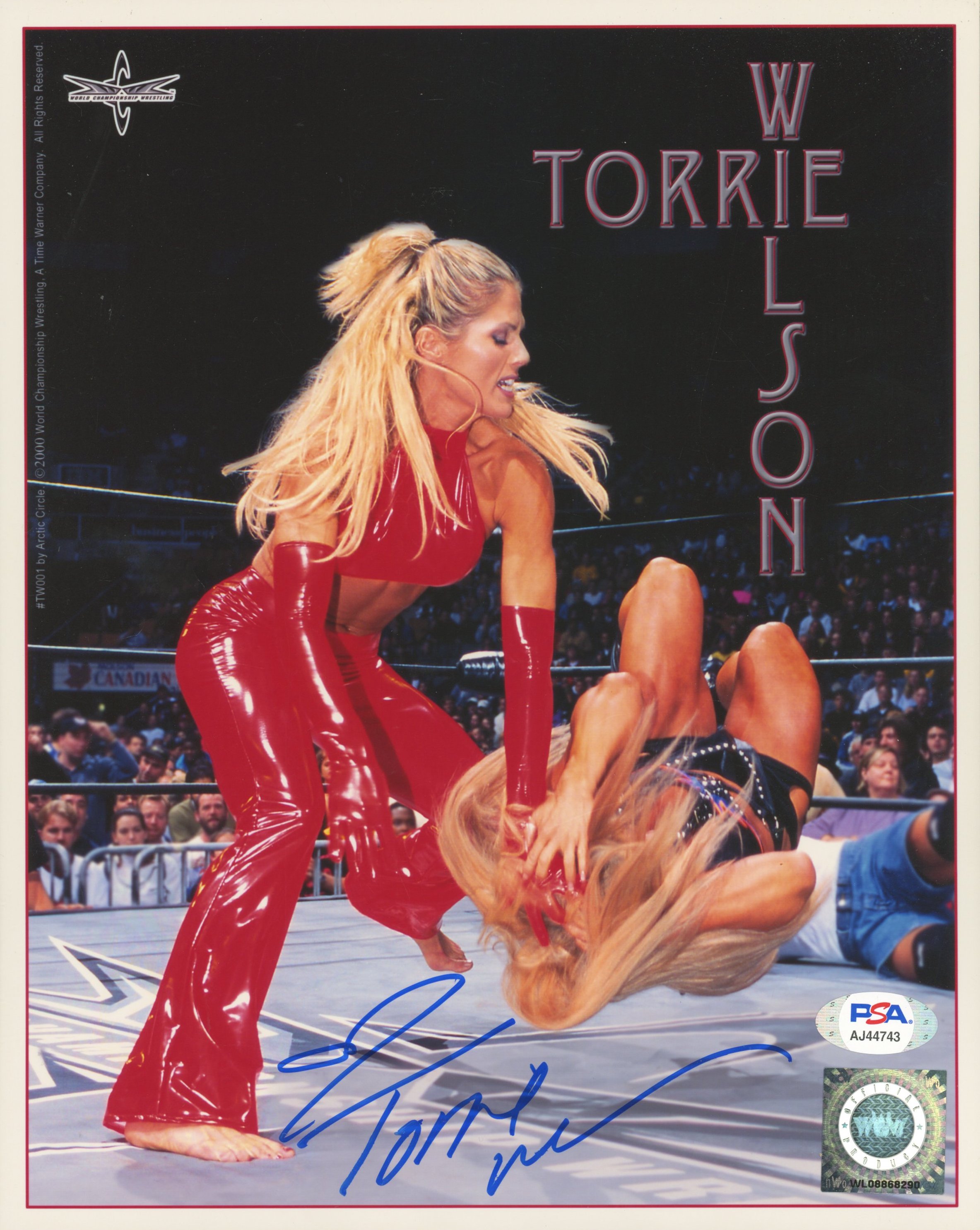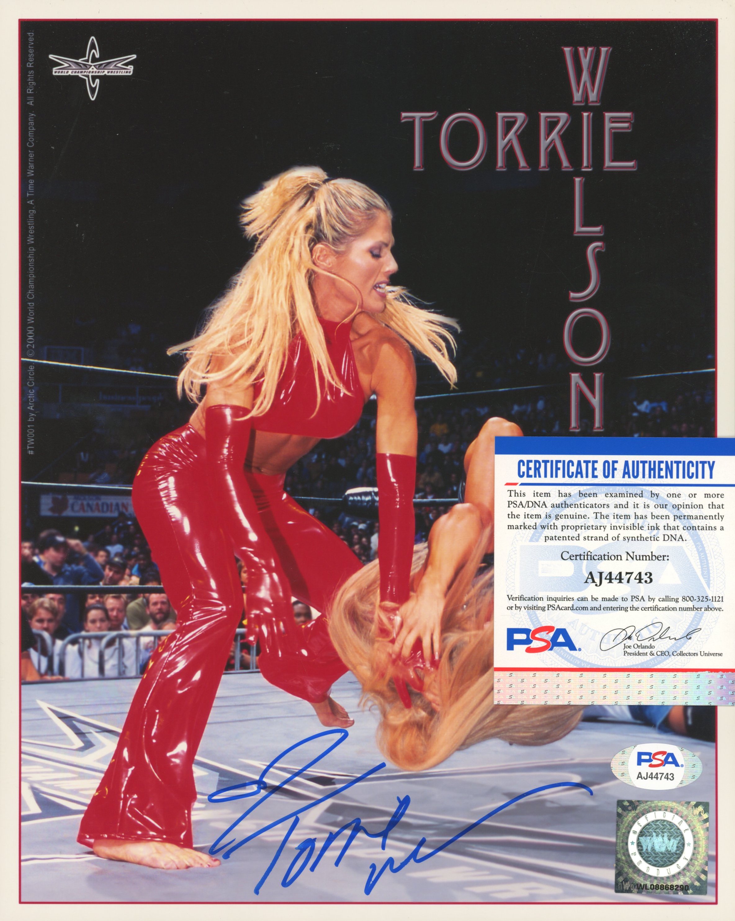 Photo measures 8" x 10" in size and has been hand-signed by Torrie Wilson.