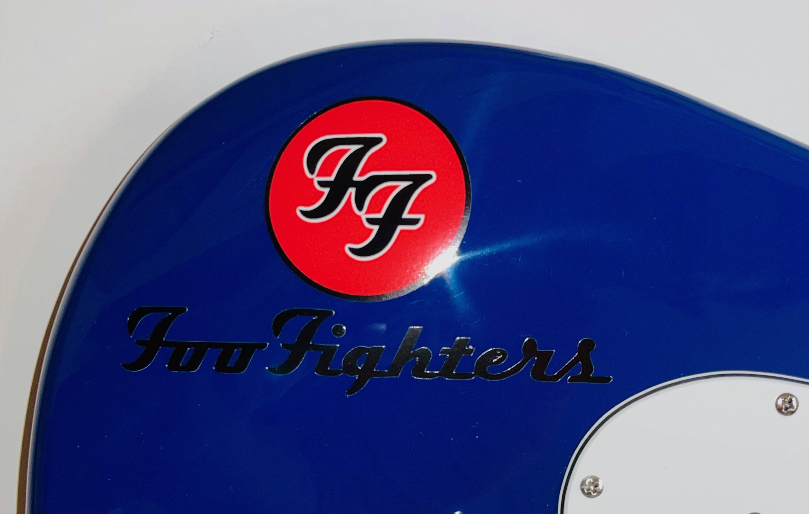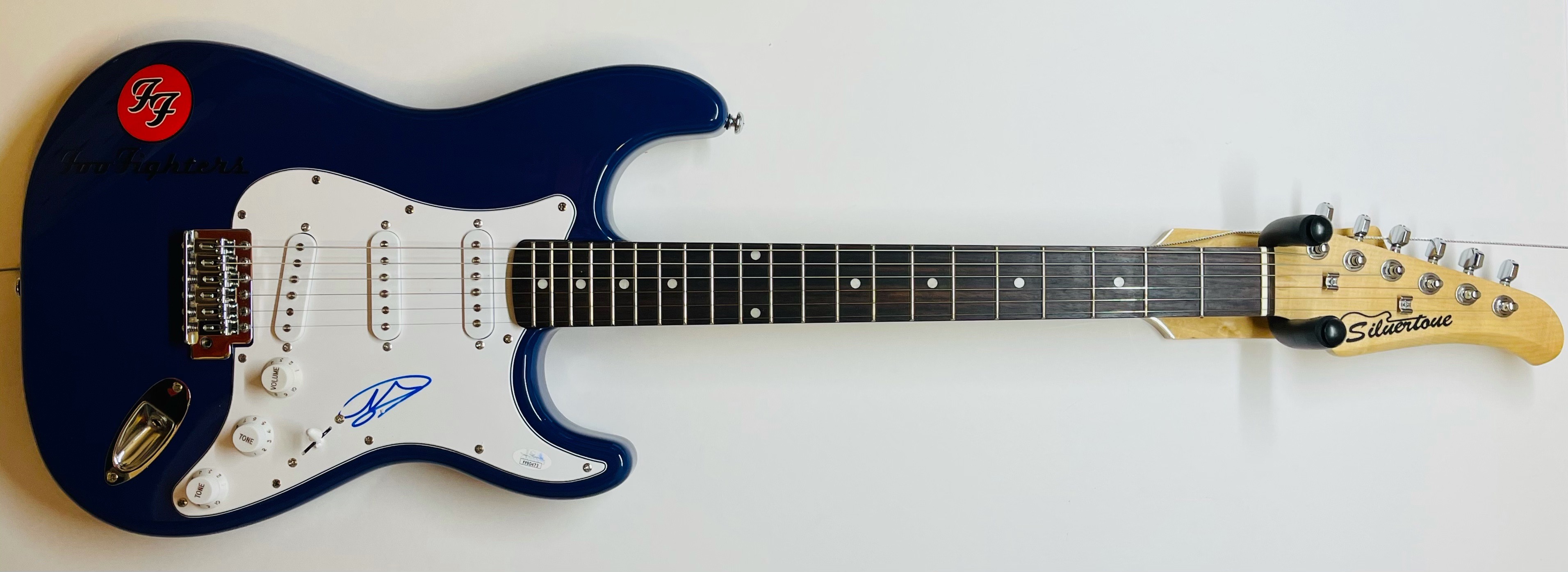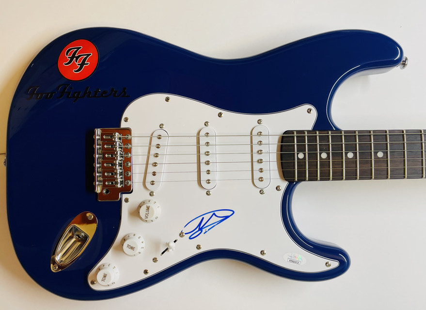 Electric guitar is hand-signed on the pickguard by Dave Grohl (HOF).
