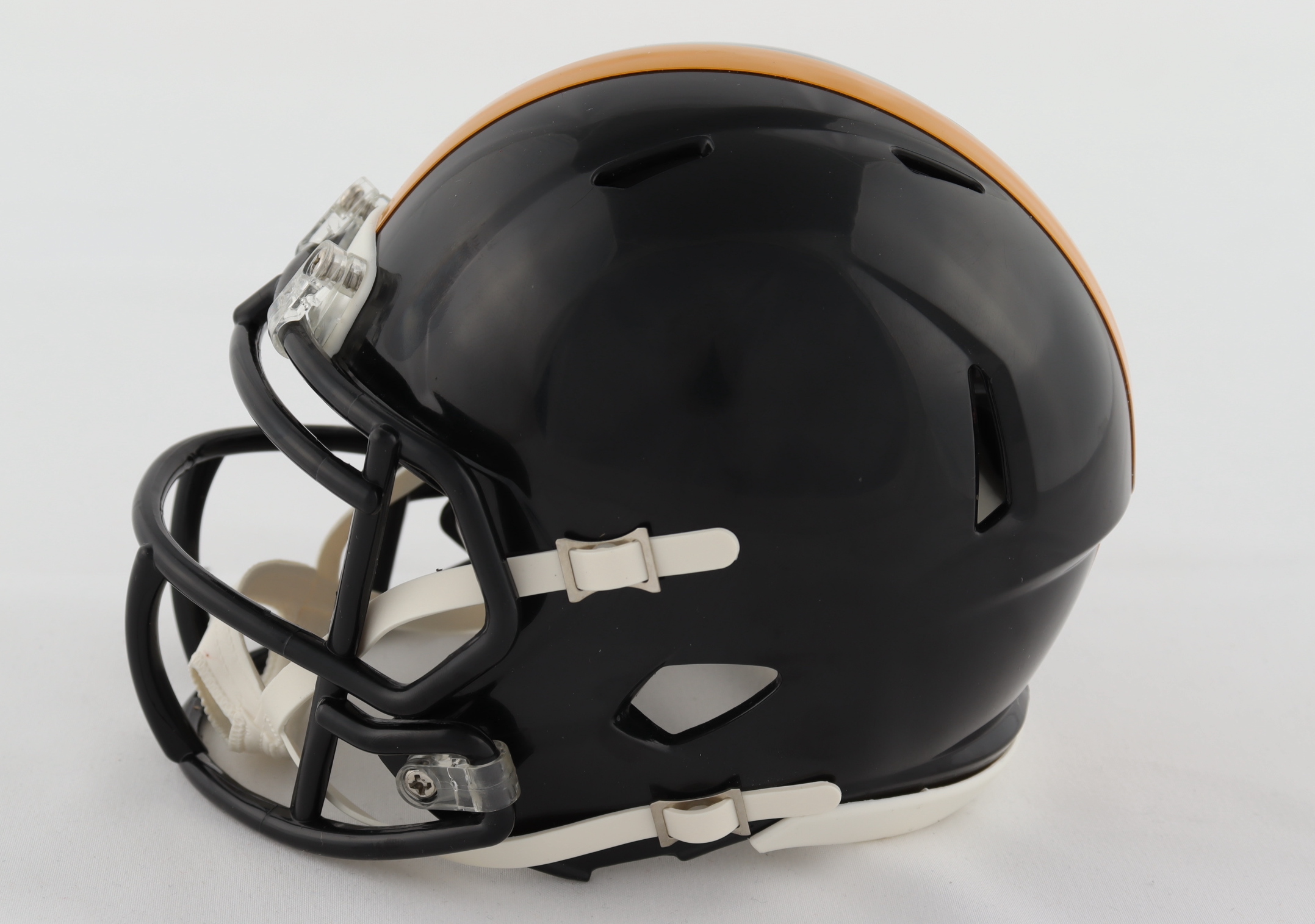 Riddell Pittsburgh Steelers speed mini helmet has been hand-signed by Pat Freiermuth.