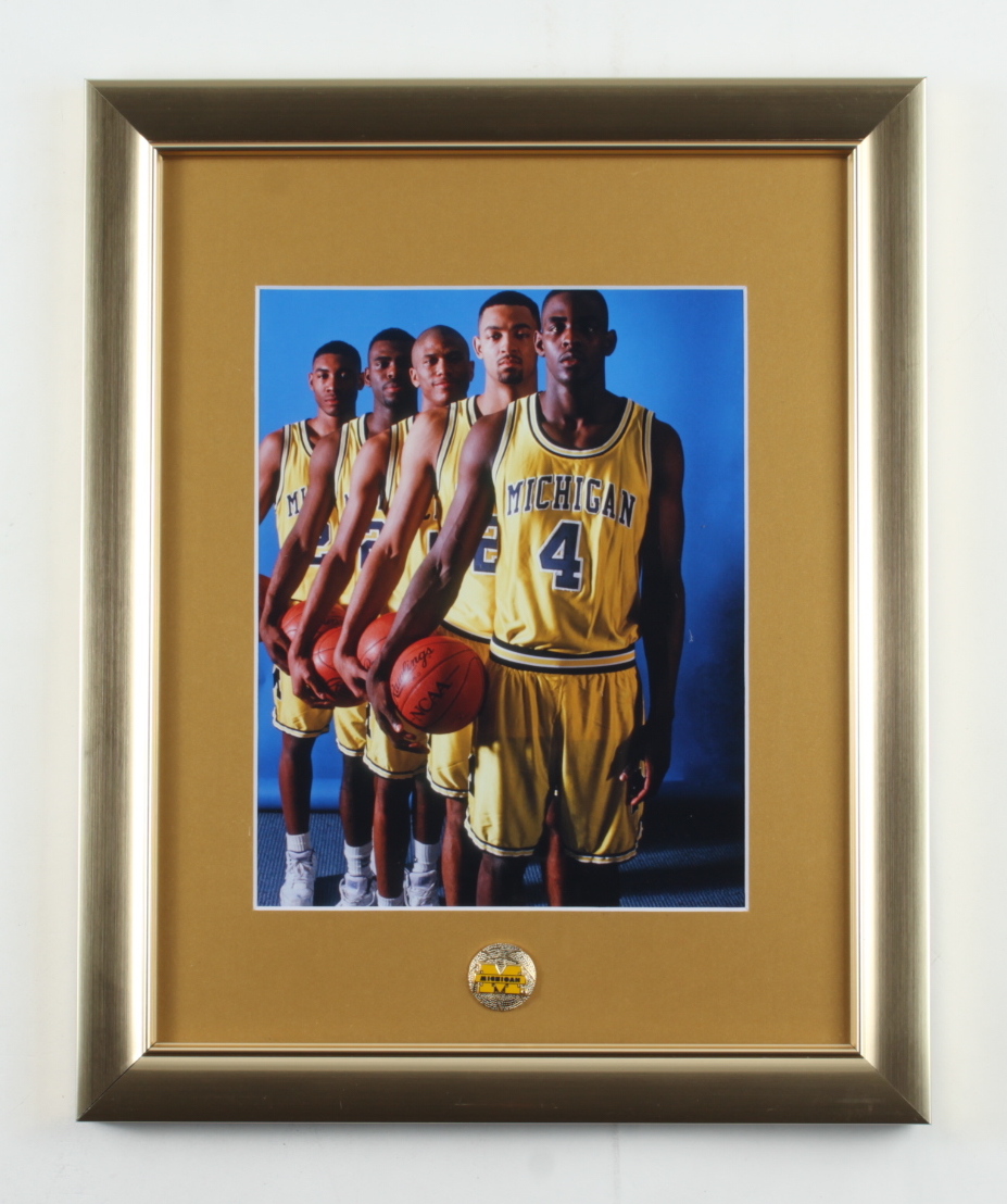 Michigan Wolverines "Fab Five" 13x16 Framed Photo With Michigan Basketball Pin (See Description)
