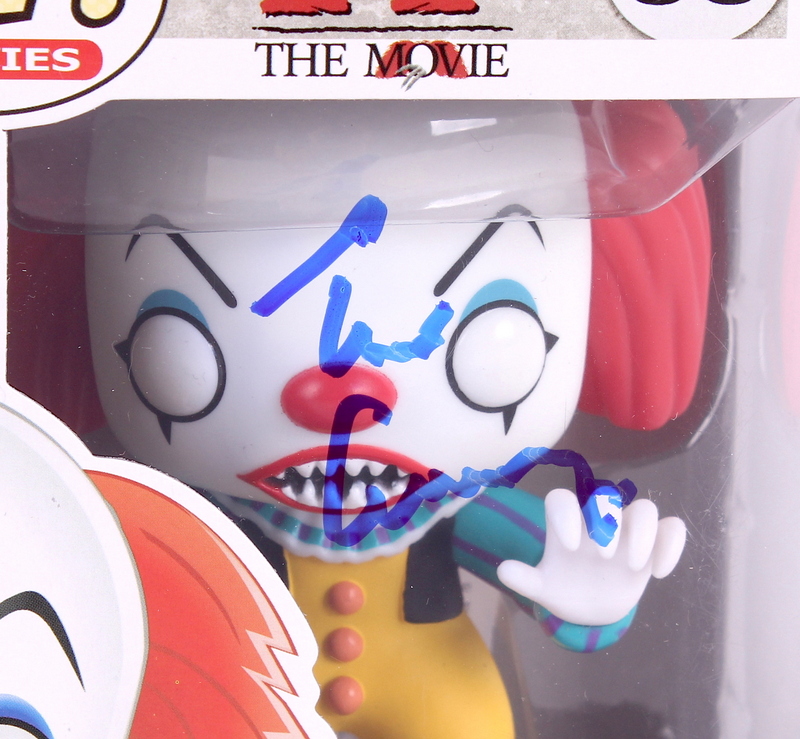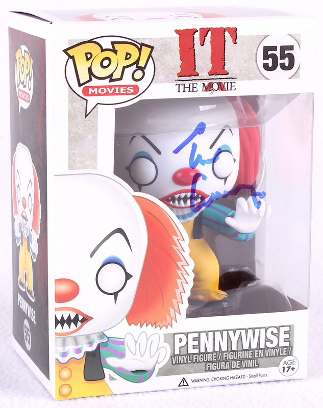 Funko Pop vinyl figure hand-signed in blue felt tip pen by Tim Curry. Figure measures approximately 4" tall and comes in the original packaging as shown.