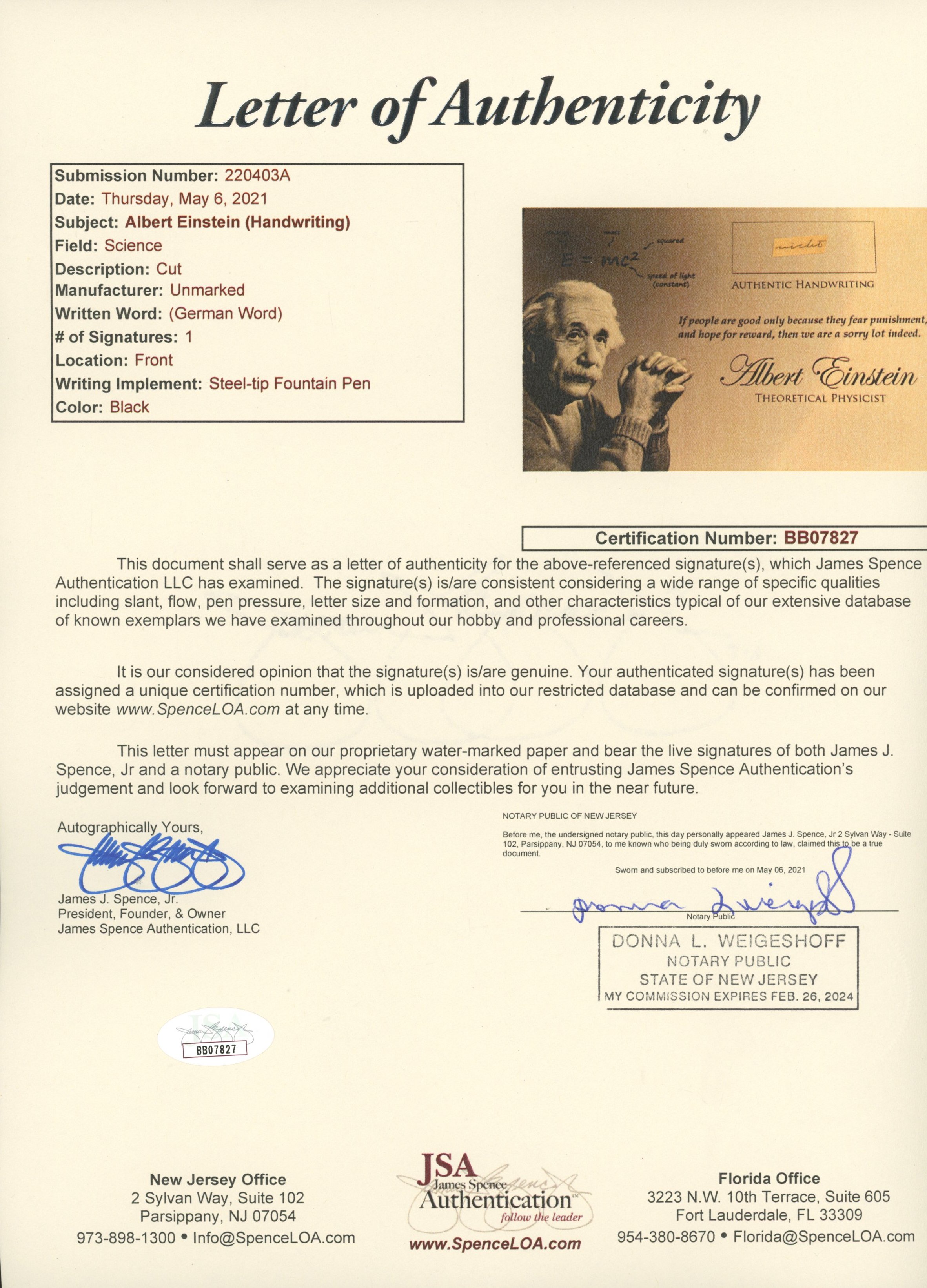 Cut word has been penned in the hand of Albert Einstein (D. 1955).
