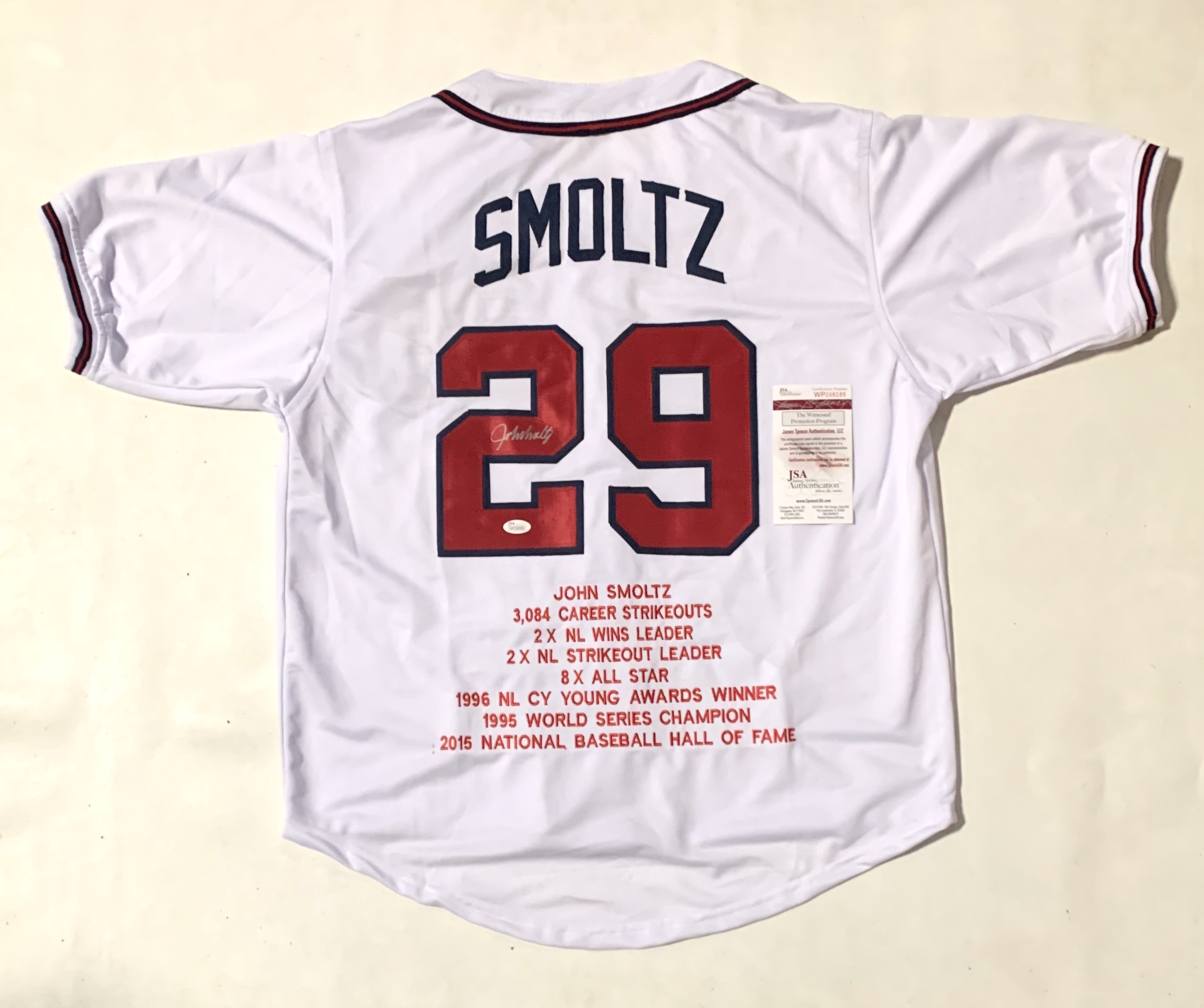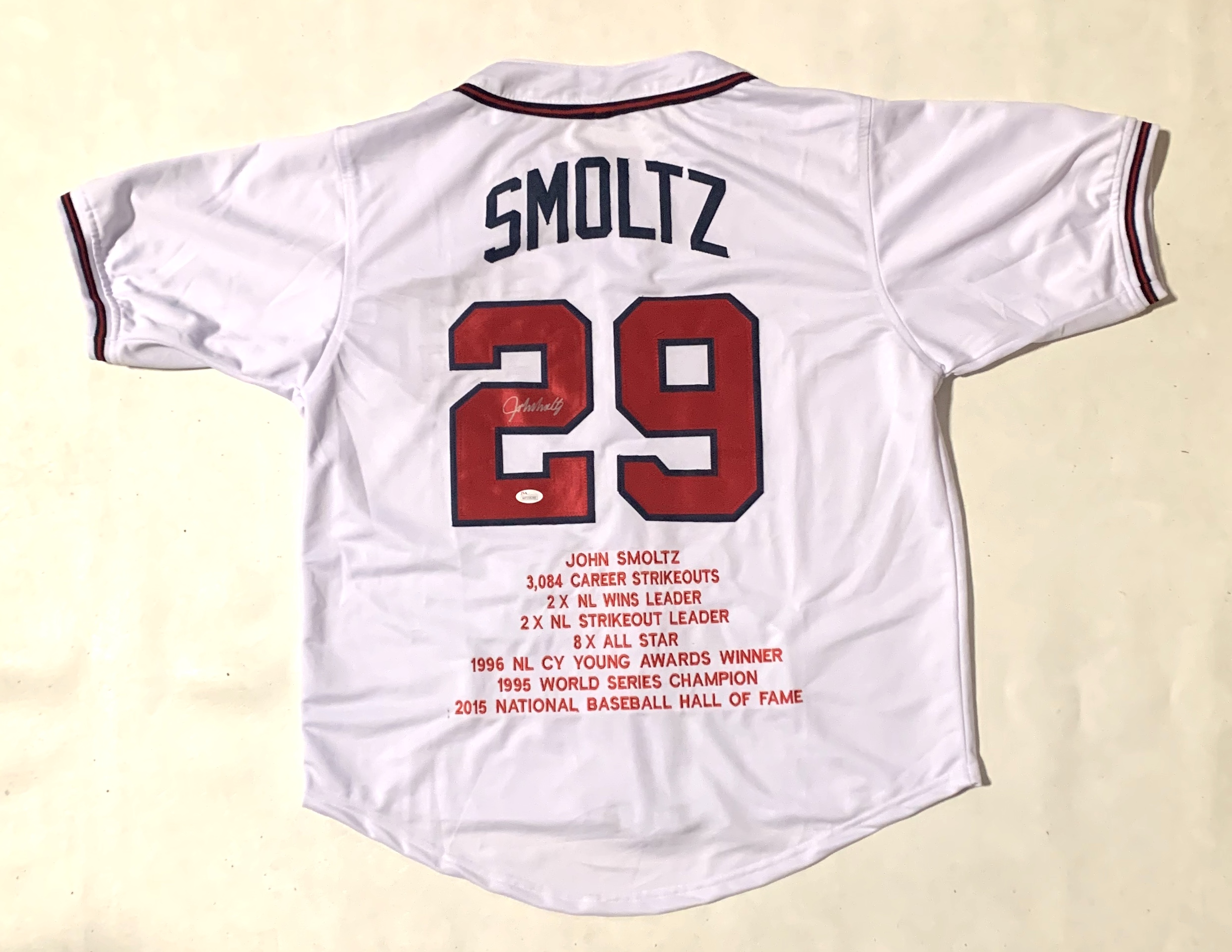 John Smoltz Signed Career Highlight Stat Jersey (JSA COA)