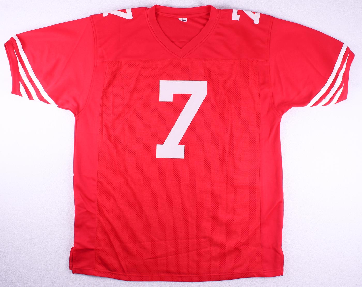 Custom on-field style jersey. Everything is sewn on, size XL. Hand-signed in black felt-tip pen by Colin Kaepernick.