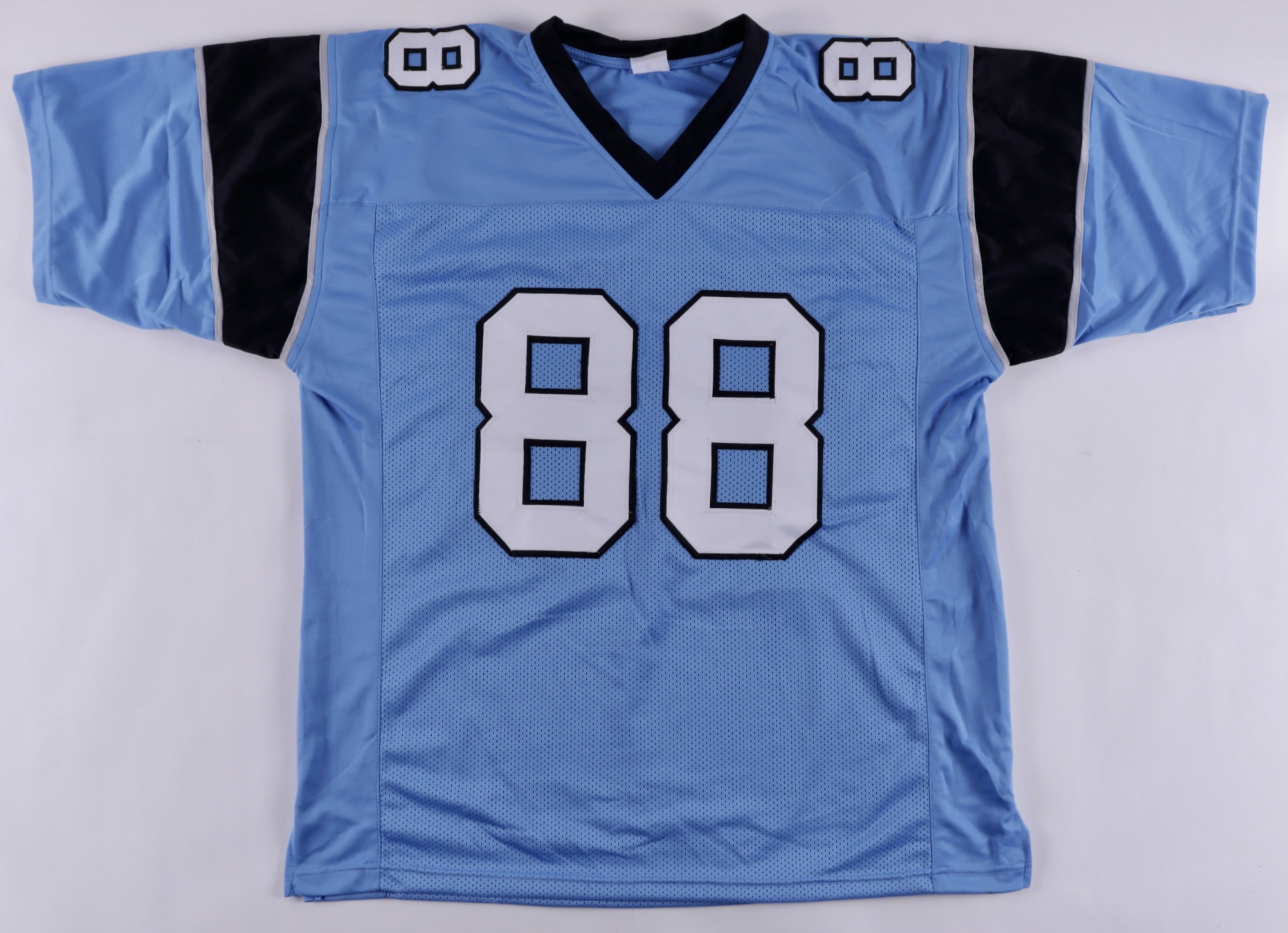 Custom on-field style jersey. Everything is sewn on, size XL. Has been hand-signed by Greg Olsen.