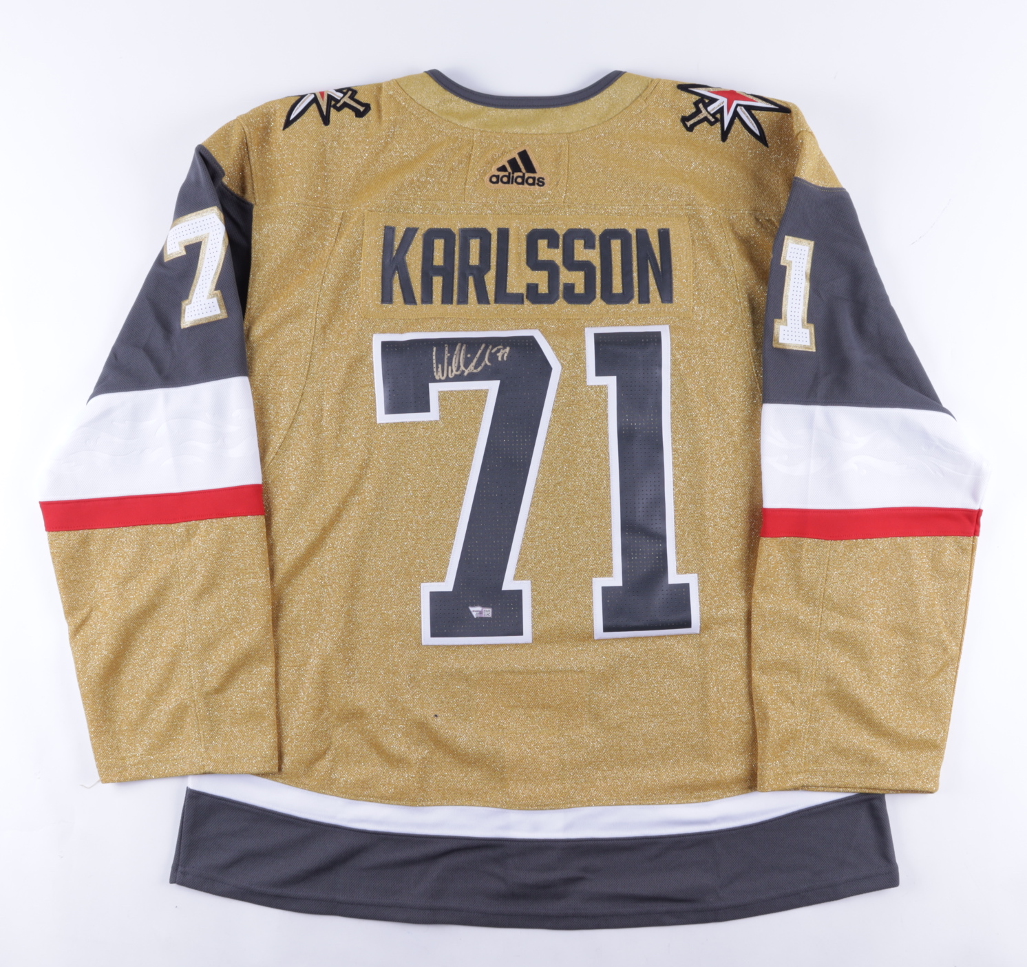 Adidas on-ice style jersey. Everything is sewn on, size 54. Hand-signed by William Karlsson (Las Vegas Golden Knights).