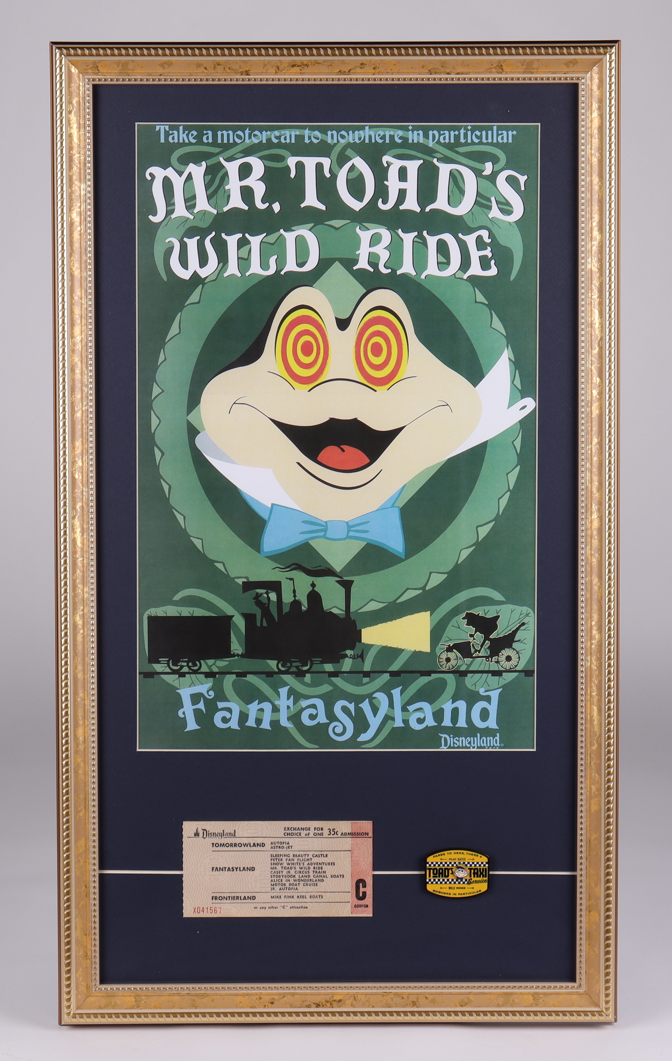 Disneyland "Fantasyland: Mr. Toad's Wild Ride" 15x26 Custom Framed Print Display with Vintage Disneyland 'C' Mr. Toad Ticket & Mr. Toad Ride Pin