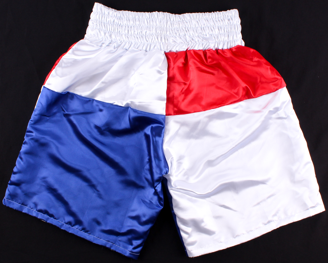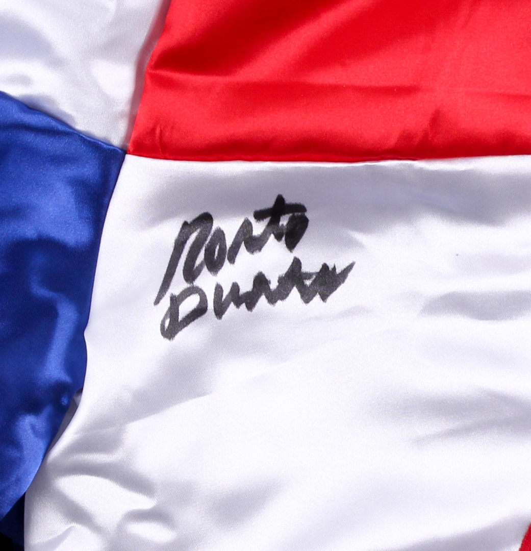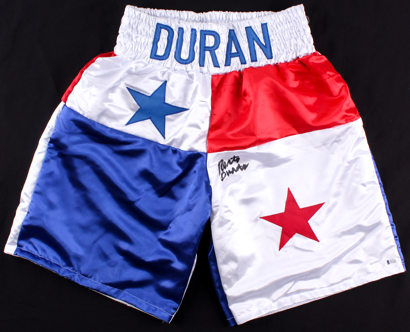 Custom boxing shorts have been hand-signed by Roberto Duran.