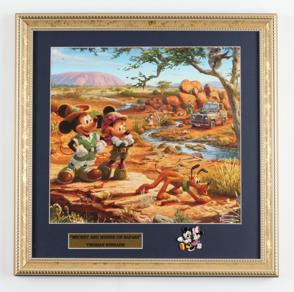 Thomas Kinkade "Mickey & Minnie Mouse" 16x16 Custom Framed Print Display with Mickey & Minnie Lapel Pin