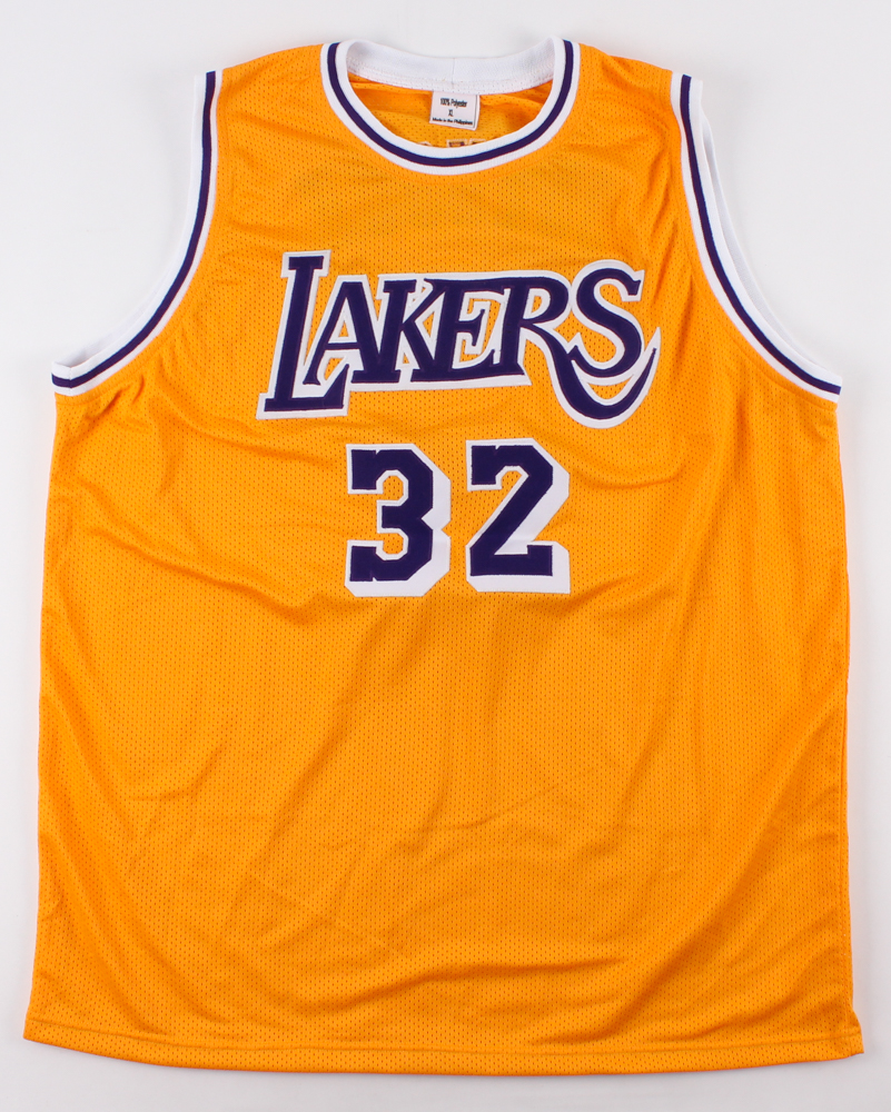 Custom on-court style jersey. Everything sewn on, size XL. Hand-signed by Magic Johnson (HOF).