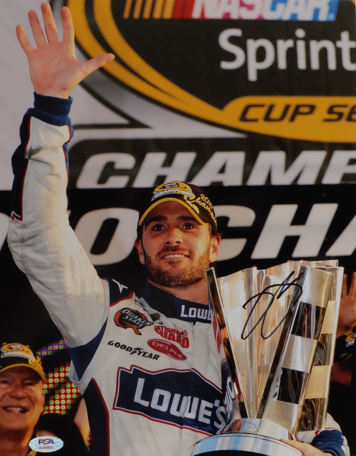 Photo measures 11" x 14" in size and has been hand-signed by Jimmie Johnson.