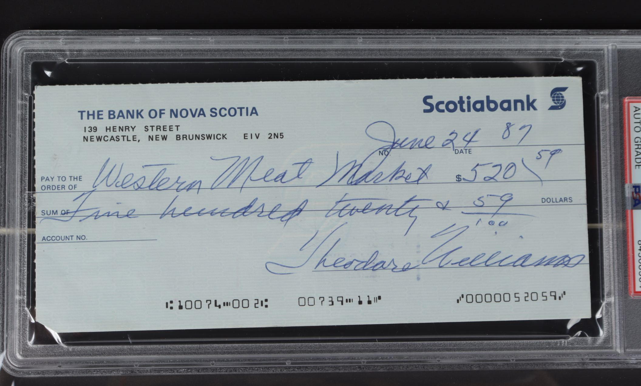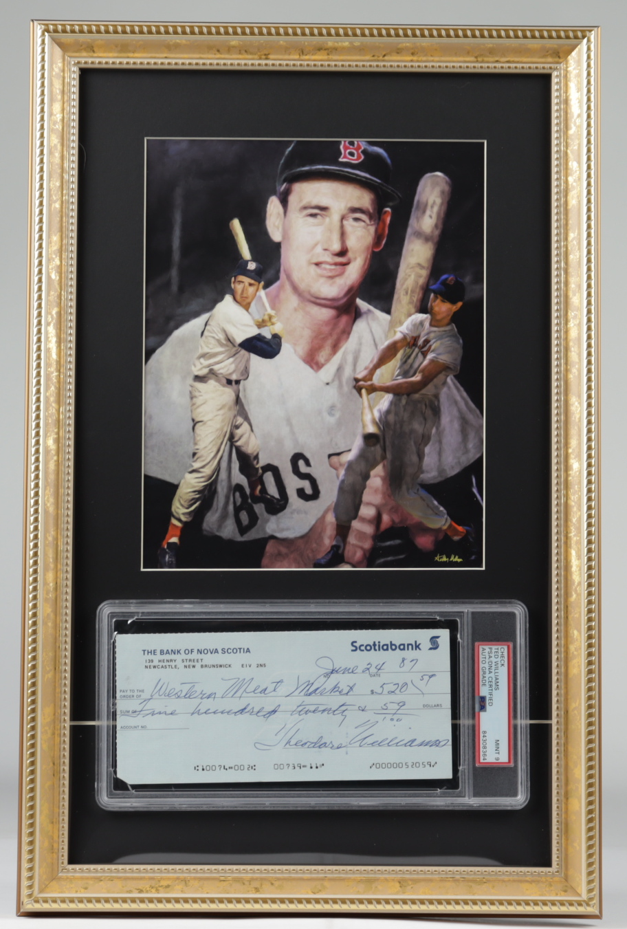 Ted Williams Signed Red Sox 16x24 Custom Framed 1987 Original Personal Bank Check Display with Textured Art Print of Ted Williams (PSA Encapsulated)