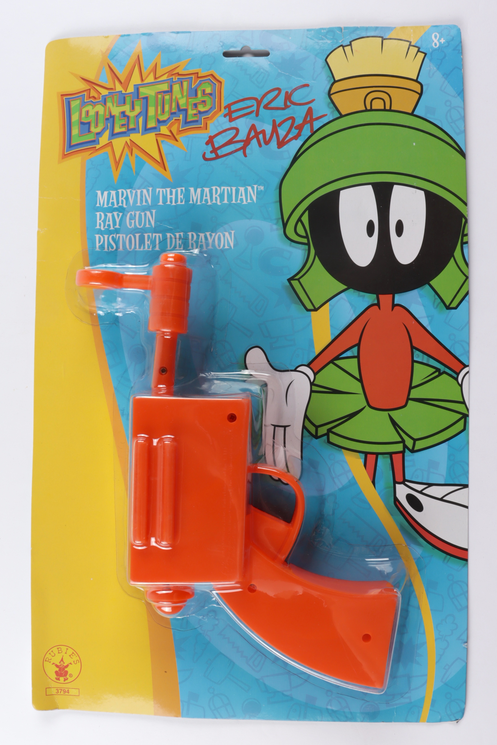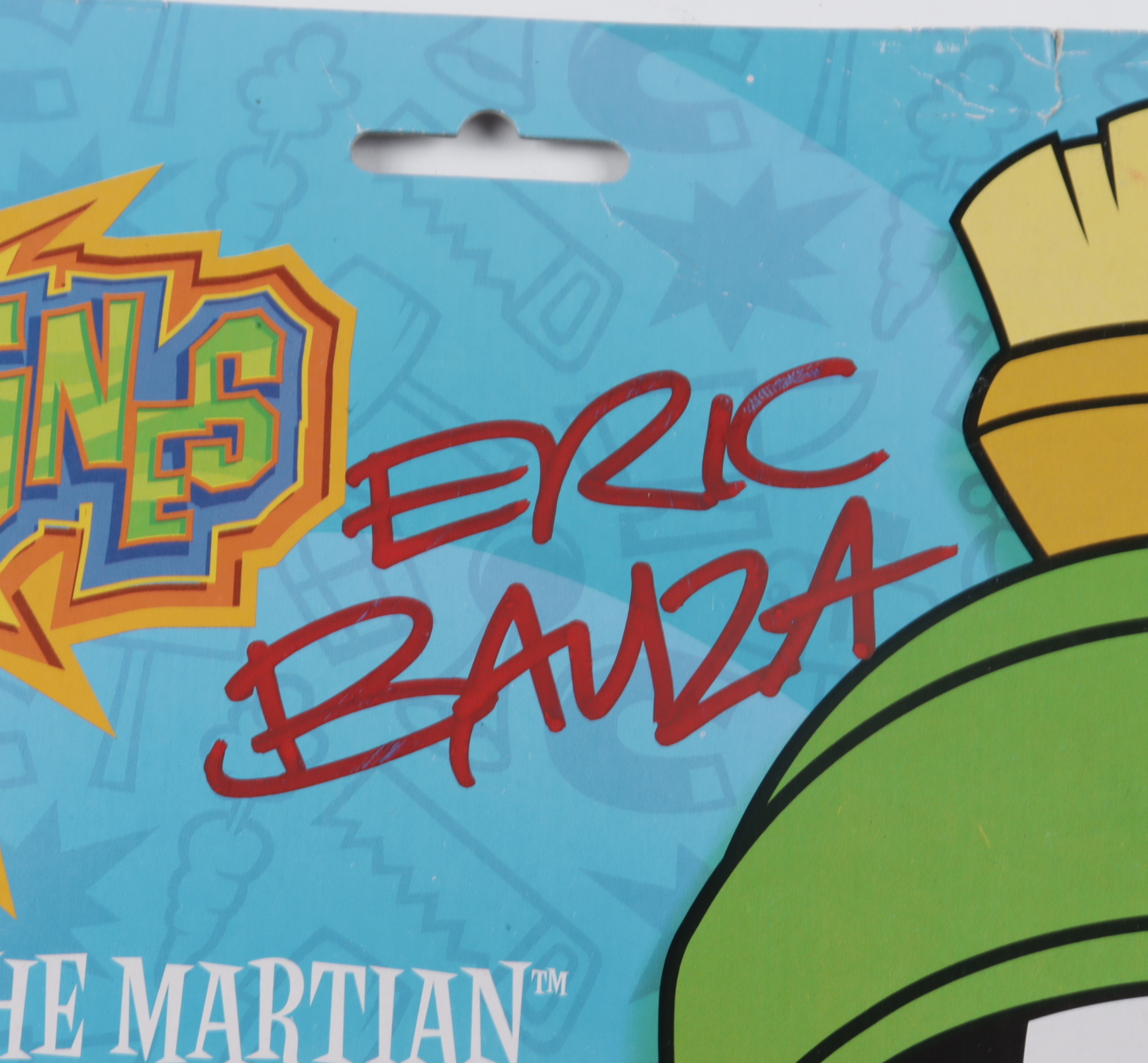 Looney Tunes Marvin the Martian ray gun measures approximately 10" x 16" and comes in the original packaging, which has been hand-signed by Eric Bauza.